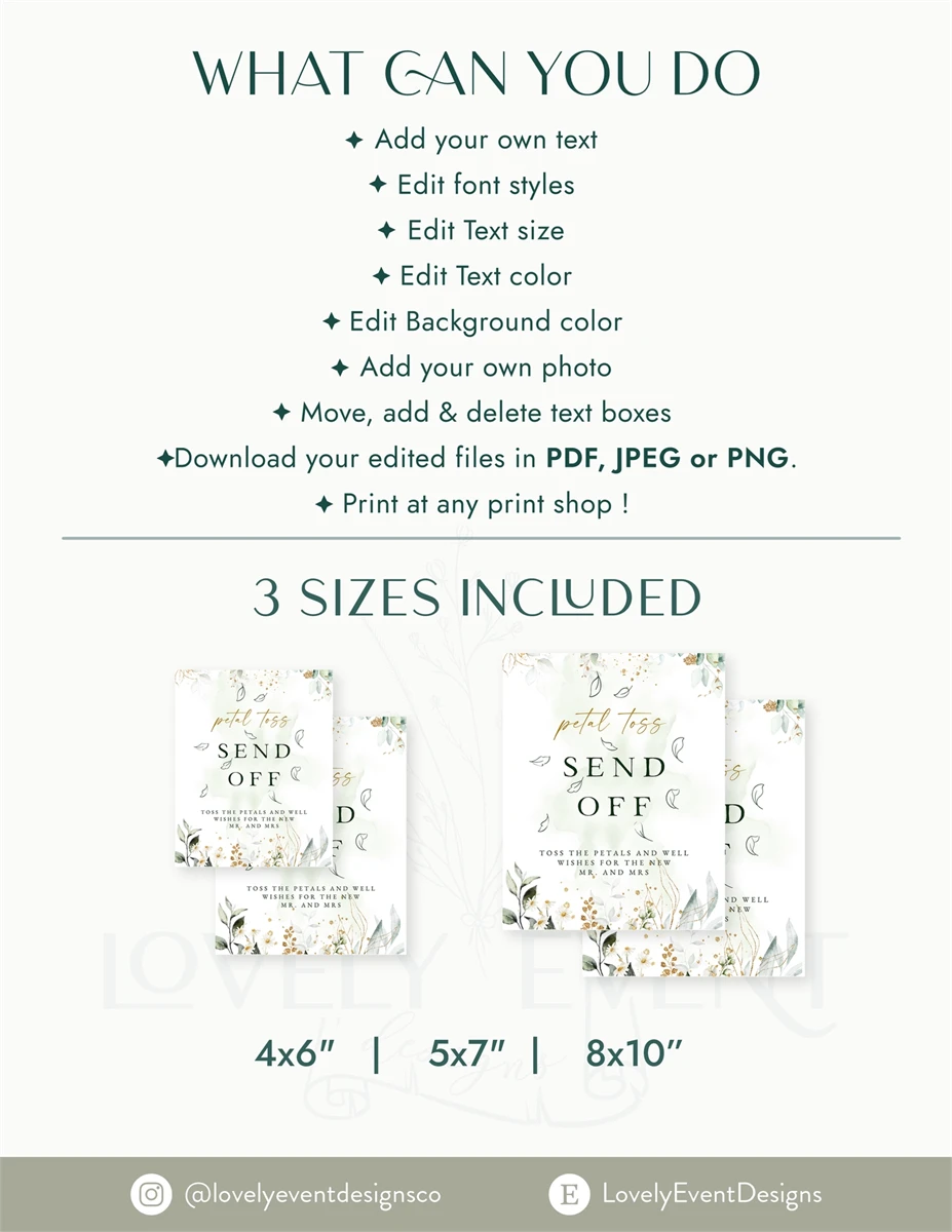 Petal Toss Sign Template, Modern Petal Toss Send Off Sign, M