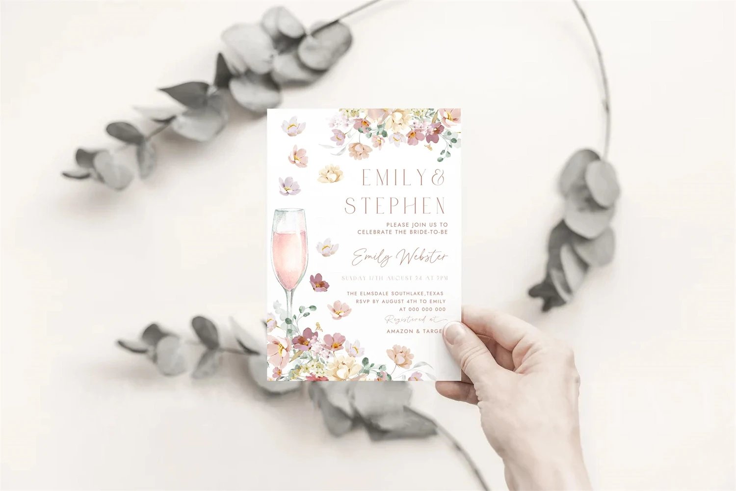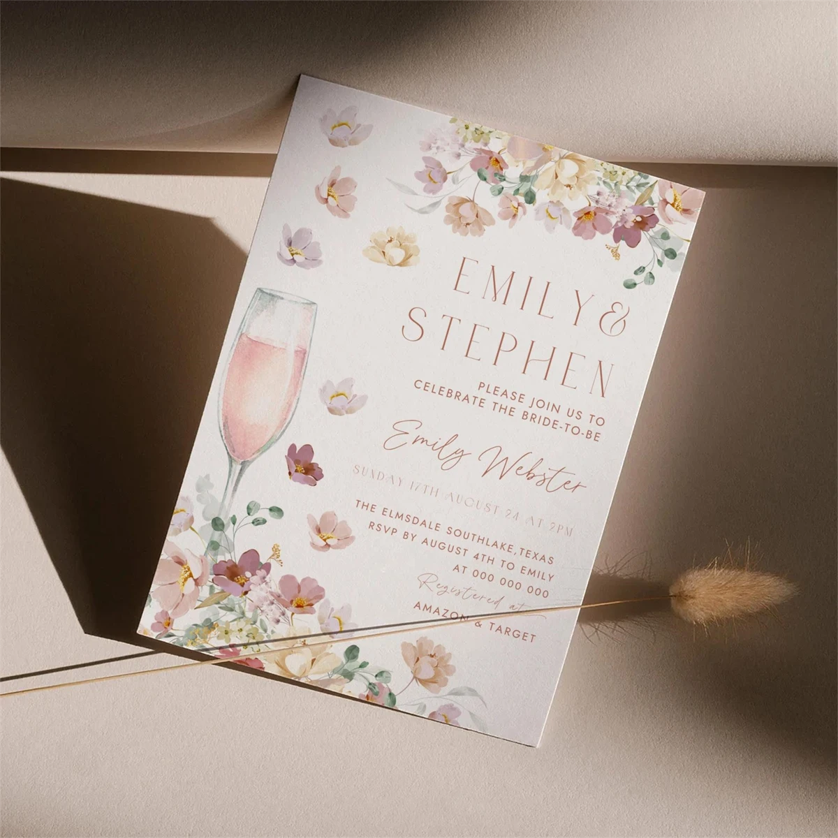 Petals and Prosecco Bridal Shower Invitation, Pink Pastel Pe