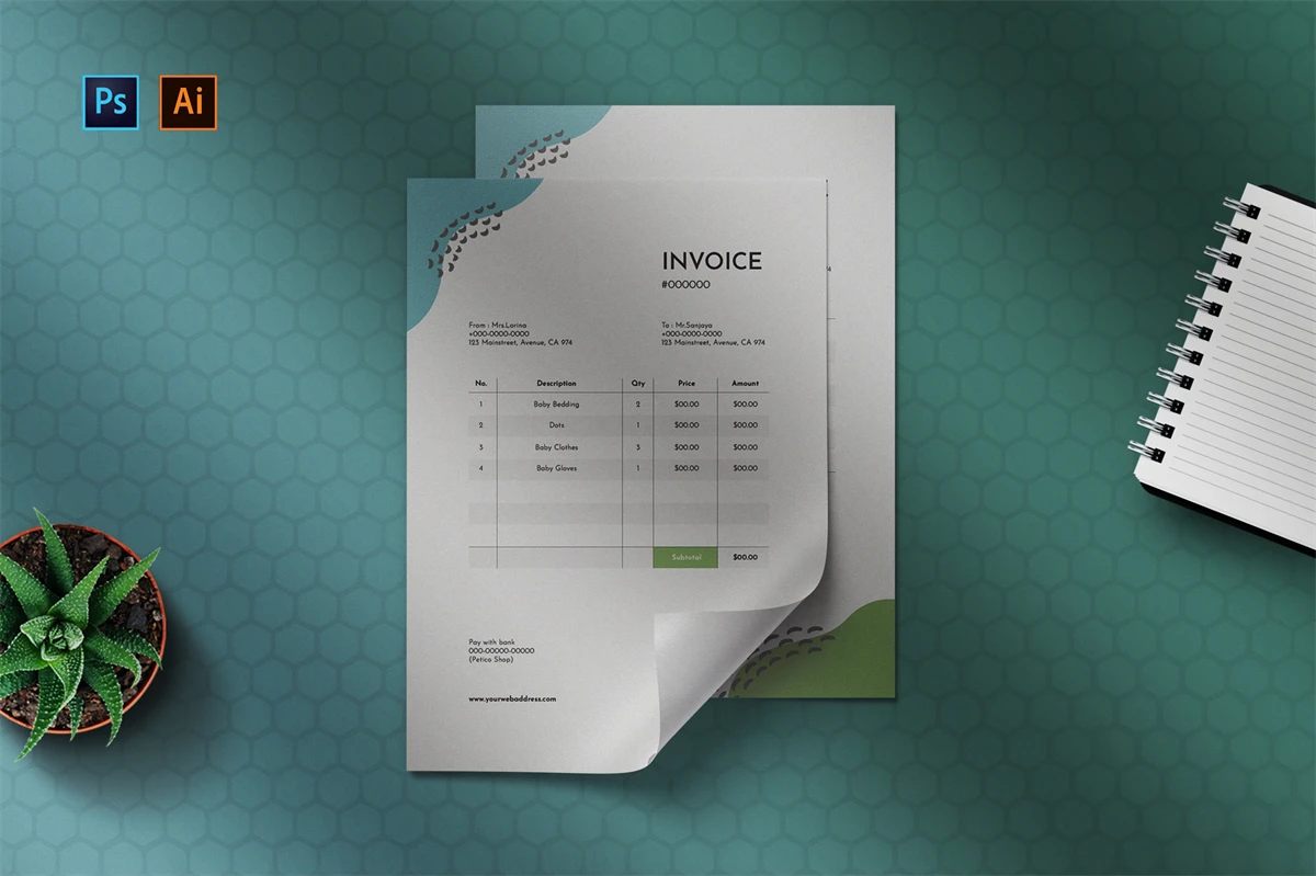 professional, up-to-date invoice templates that can be used for personal, business, or company billing. You can easily change these template files. You can quickly change the text, fonts, and colors with just a few clicks to create your own content and color scheme. This invoice template will make it easy and quick for you to make an invoice.