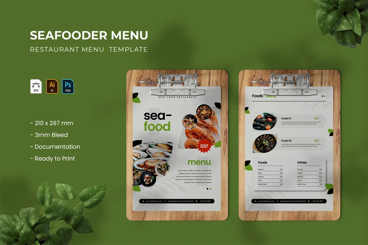 Menu Restaurant Template is a menu template for people who sell, business, or run a food-related business. The layout makes it easy to find the menu you want. Too many choices can make customers feel overwhelmed, so its better to limit the number of choices, colors, and other design elements so that customers can easily scan and order items.