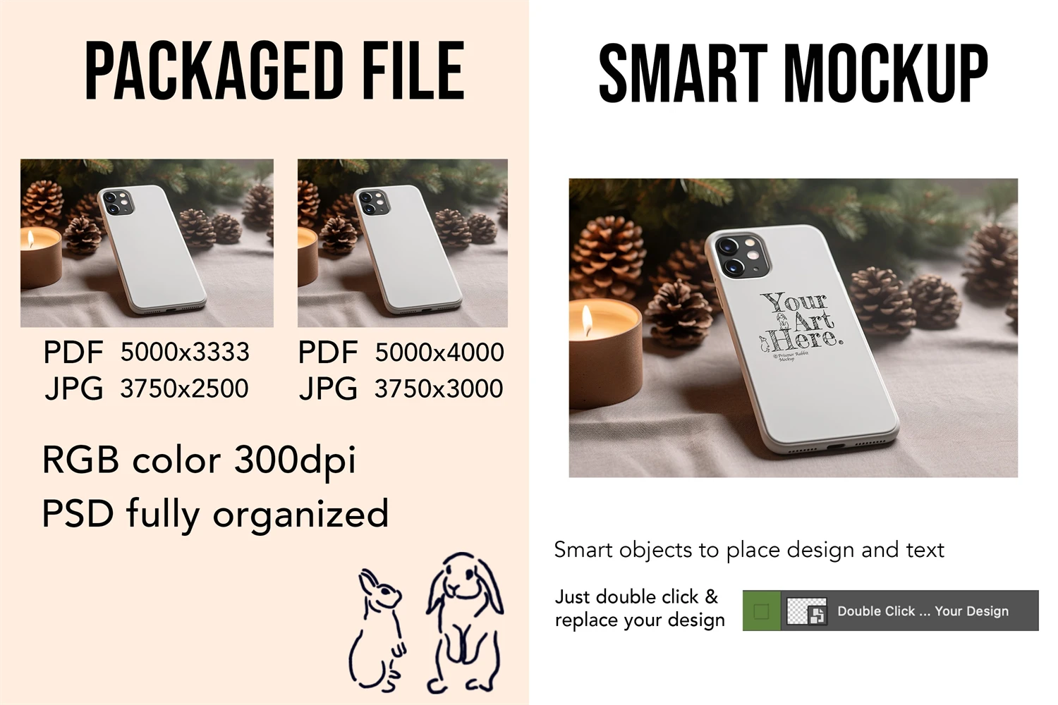 Phone Case mockup with Photoshop (PSD) template for interface design UI/UX, pattern, art and graphic designs.