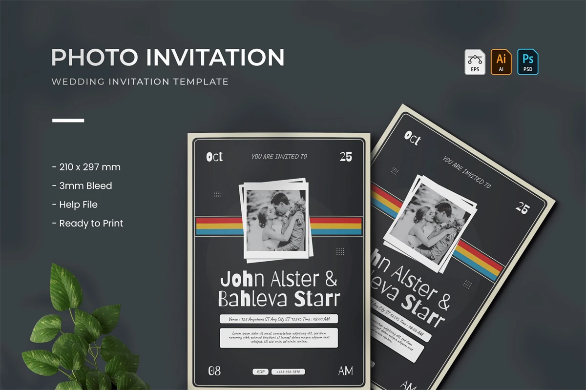 For the couple that wants to express their individuality, this wedding invitation is the right choice. In addition to the print size, we will also offer you with the digital size for Instagram Post and Instagram Story. Facebook and other social media sites also benefit from this. The accompanying AI file is fully vector, so you may scale it to any size without compromising the design.