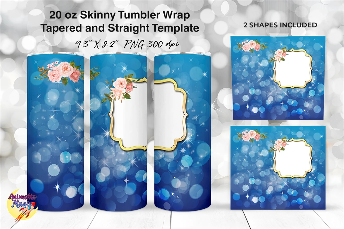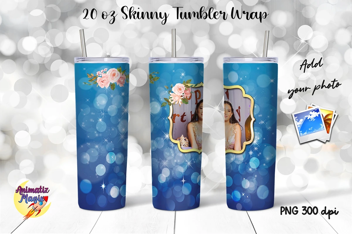 Photo Frame 20 oz Skinny Tumbler Wrap Blue Sublimation
