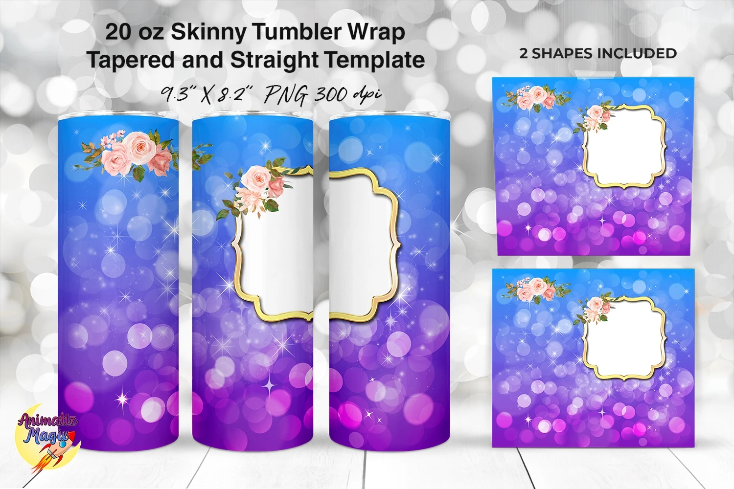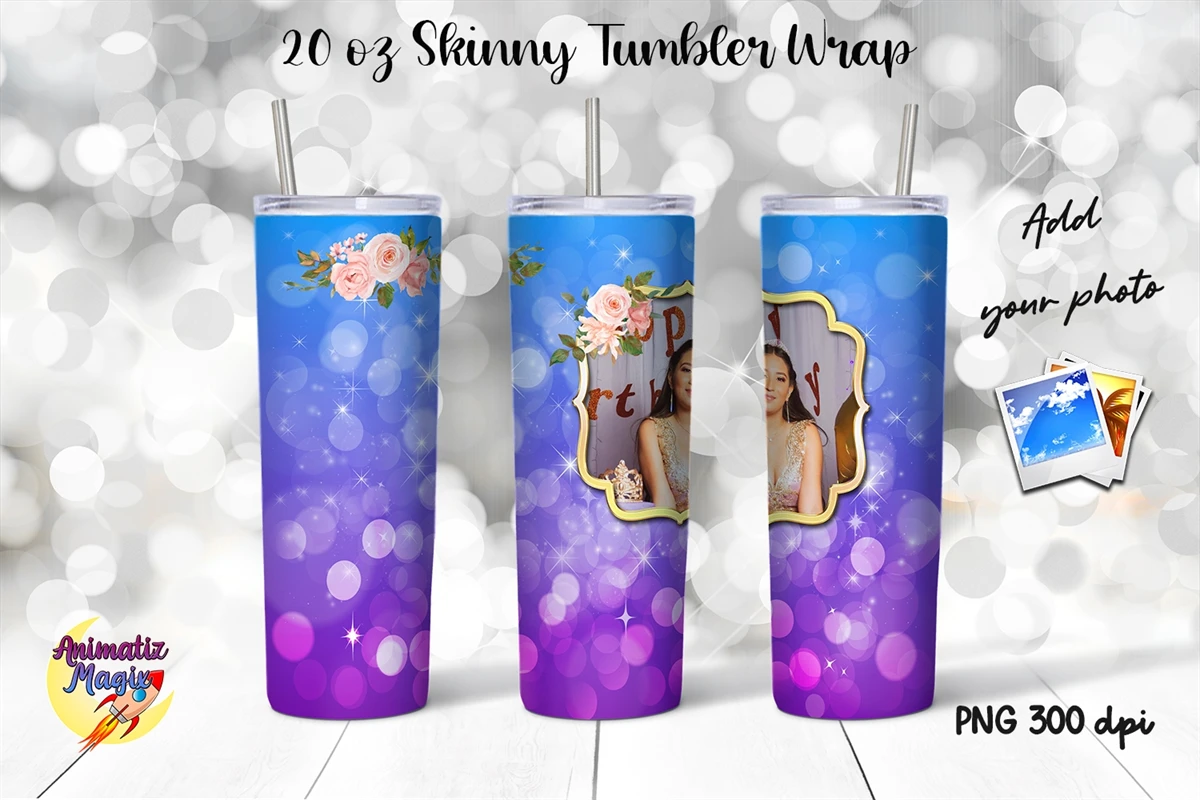 Photo Frame 20 oz Skinny Tumbler Wrap Sublimation Blue & Pur