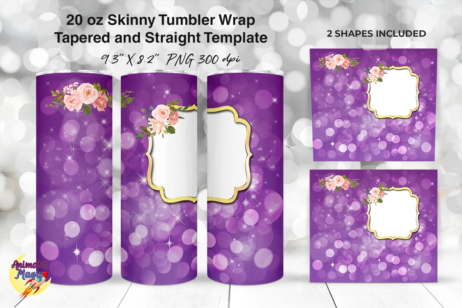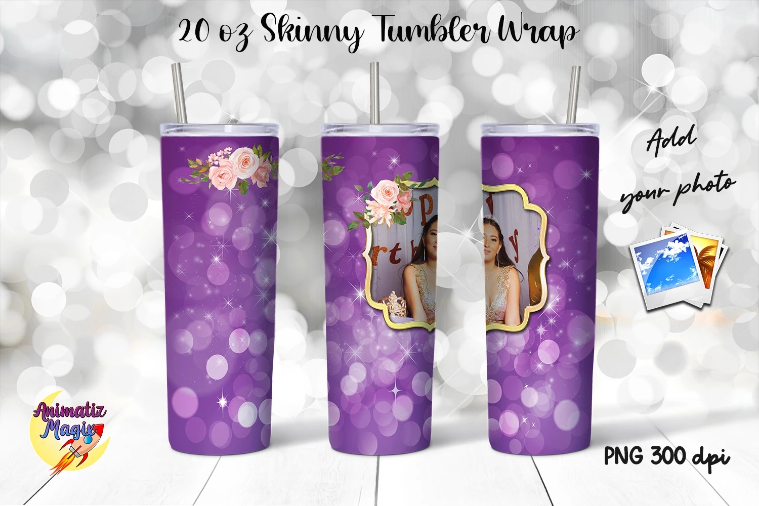Photo Frame 20 oz Skinny Tumbler Wrap Sublimation Purple