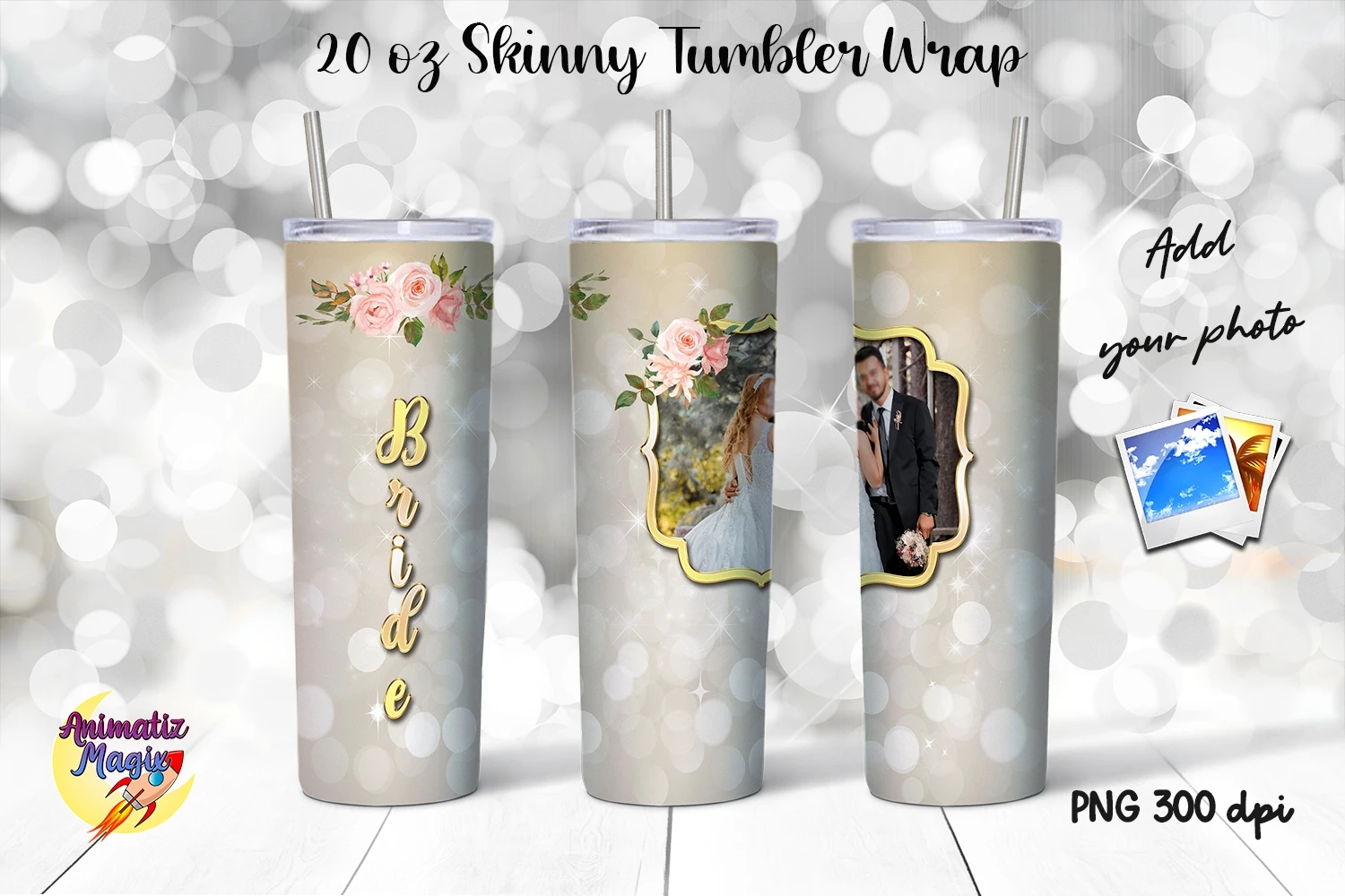 Photo Frame Bride 20 oz Skinny Tumbler Wrap