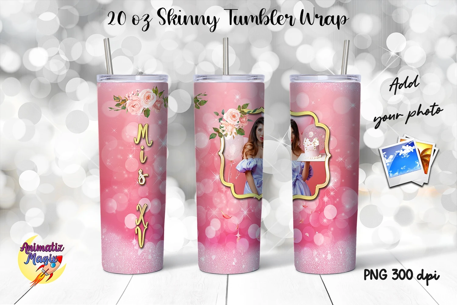 Photo Frame Quinceanera Rose Tumbler Wrap 20oz