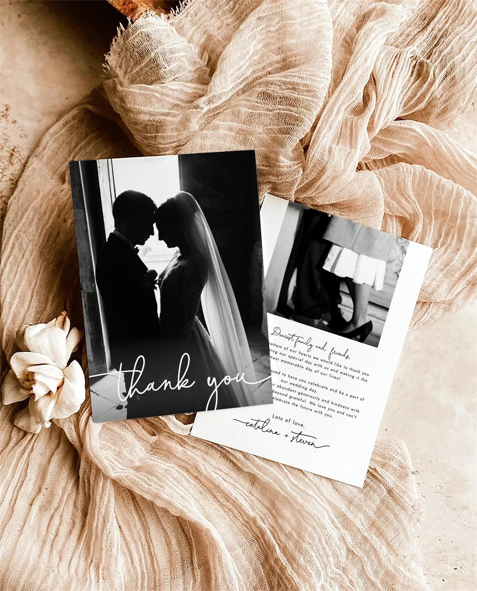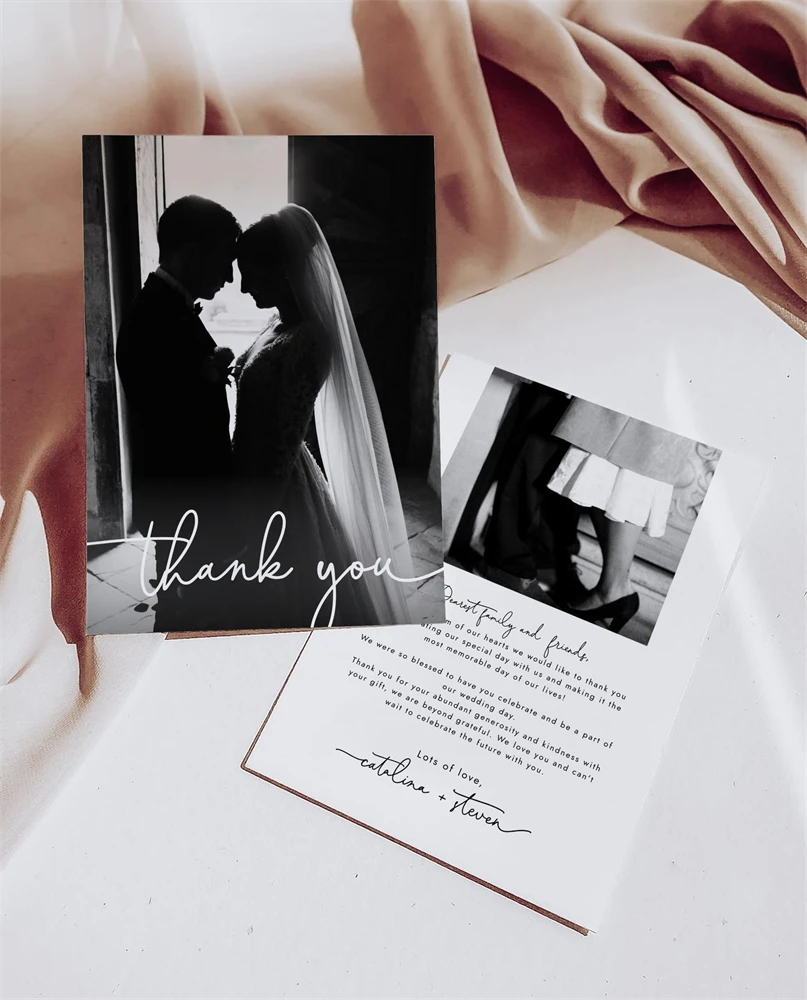 Photo Thank You Card, Minimalist Wedding Thank You Card, Mod