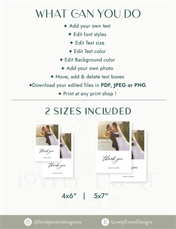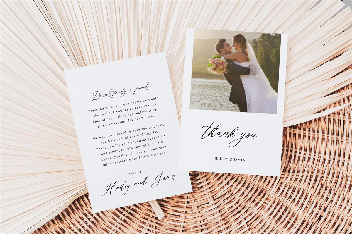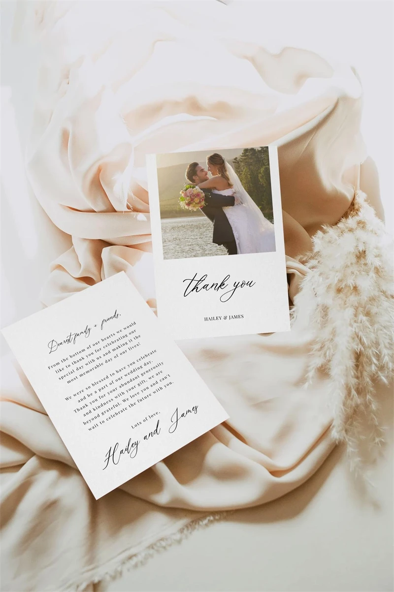 Photo Thank You Cards Template, Minimalist Wedding Photo Tha