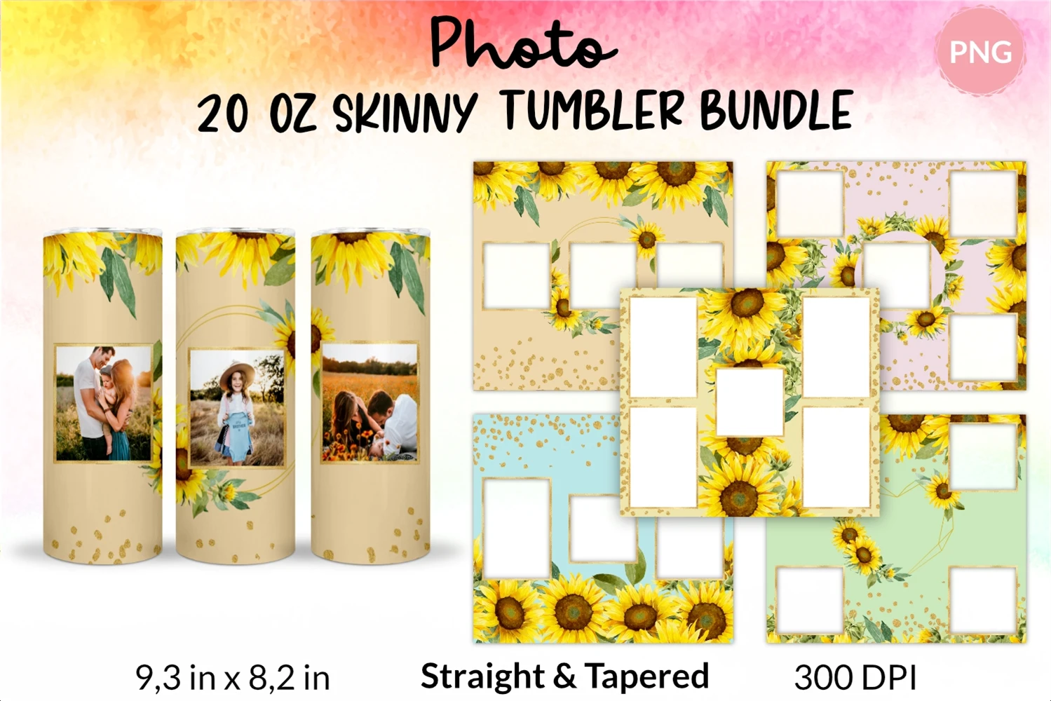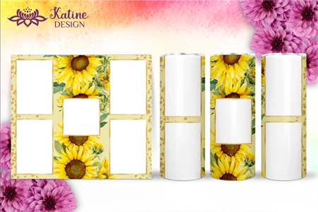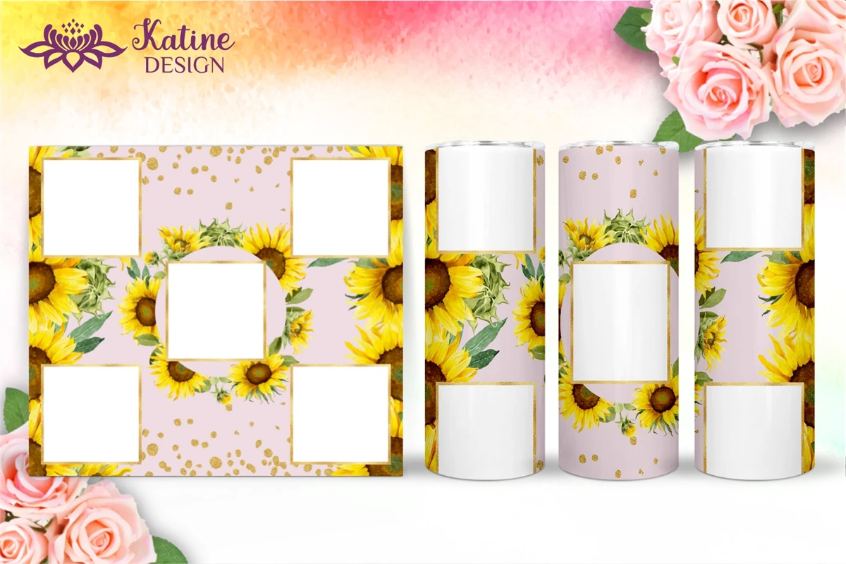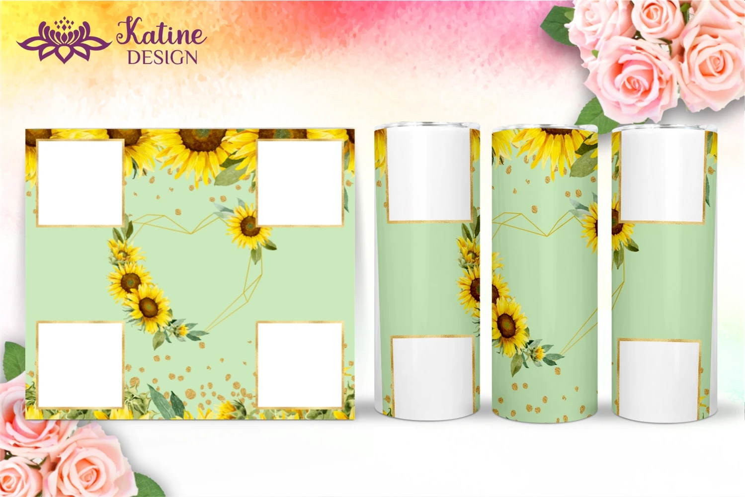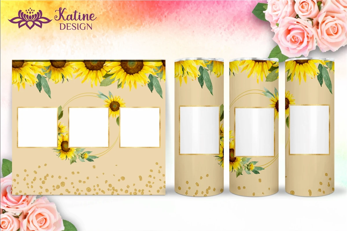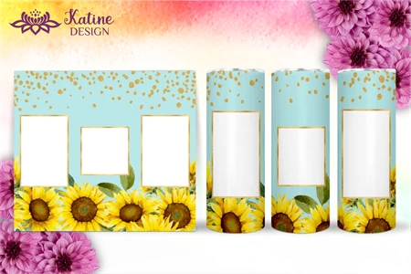 Photo Tumbler Wrap Sunflower Floral Sublimation Bundle 20 Oz Straight and tapered