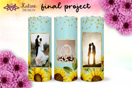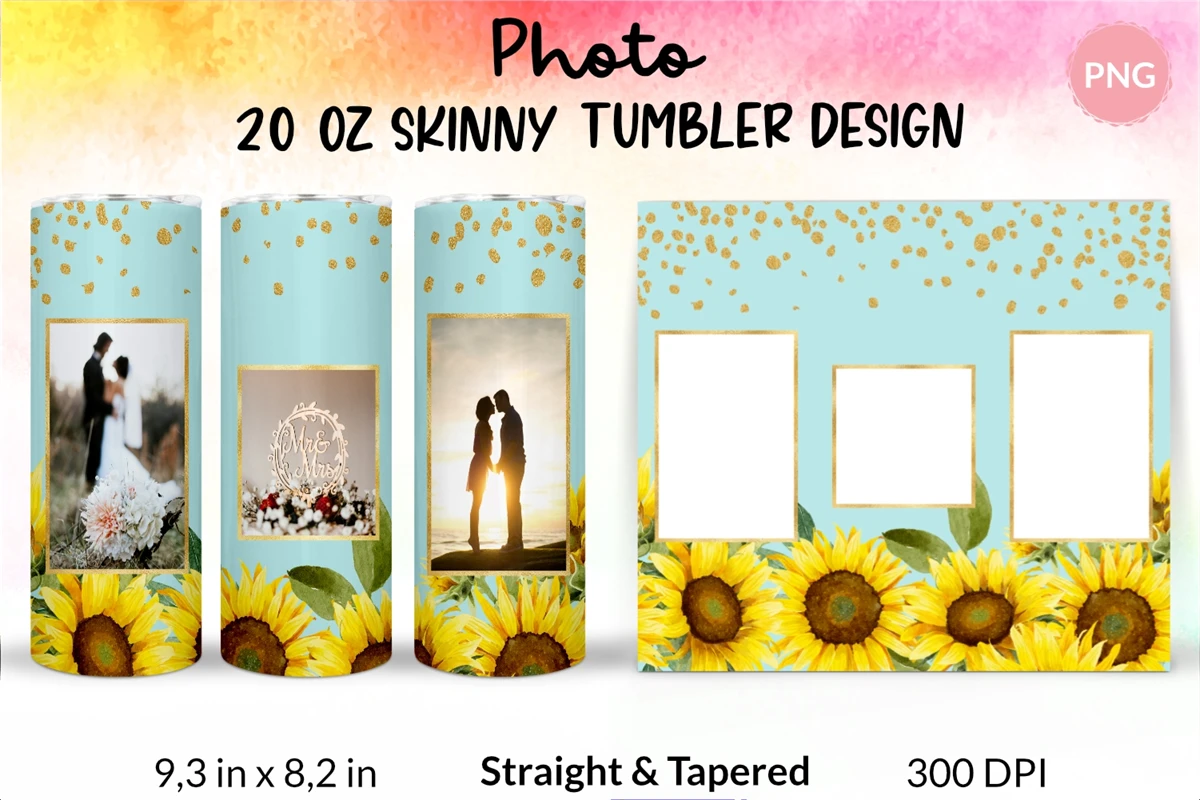 Photo Tumbler Wrap Sunflower Sublimation Floral Design 20 Oz Straight and tapered