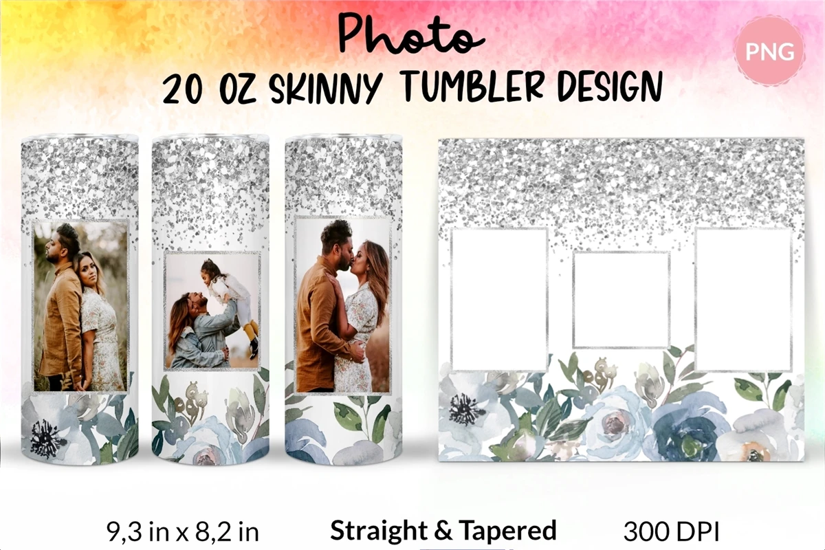Photo Tumbler Wrap Watercolor Floral Sublimation Bundle 20Oz Straight and tapered