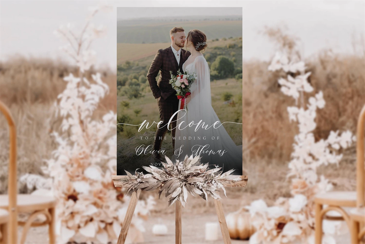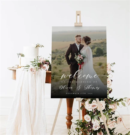 Photo welcome sign,Editable template, Welcome wedding,Canva