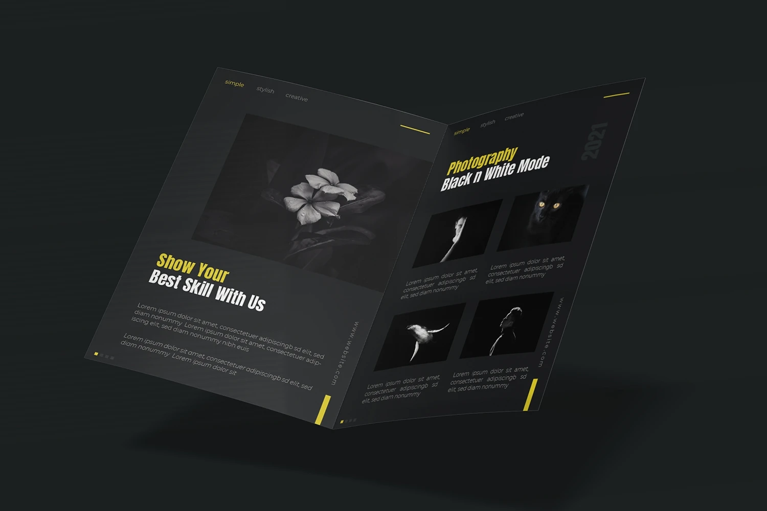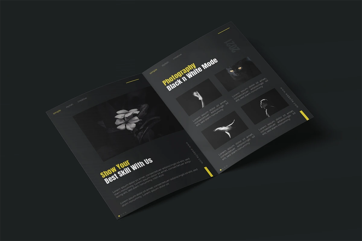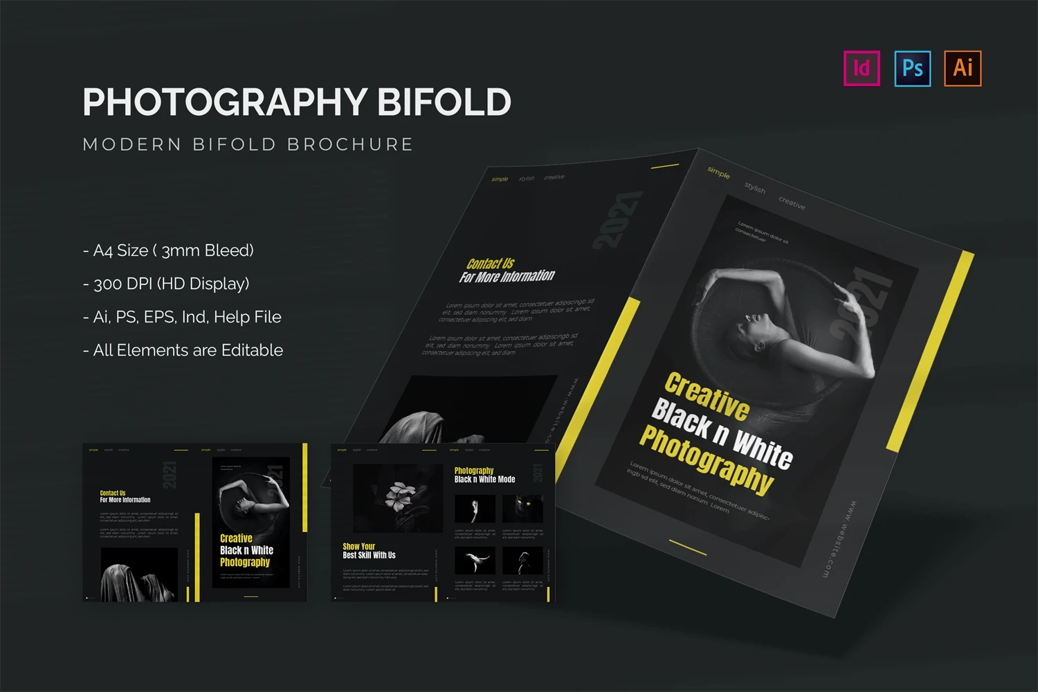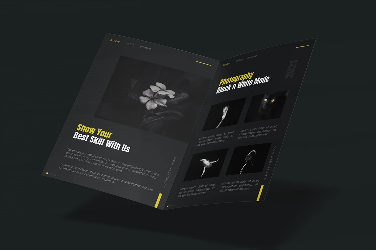 Photography - Bifold Brochure We present this Bifold Brochure for you, simple and very elegant, and this Bifold Brochure is suitable for all types of your business, made with Adobe InDesign (INDD), Adobe Photoshop (PSD) and Adobe Illustrator (AI), very easy to customize, Hope you Like it, dont forget to rate, Thanks.