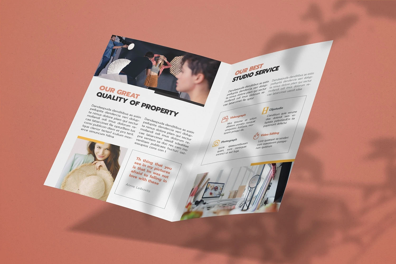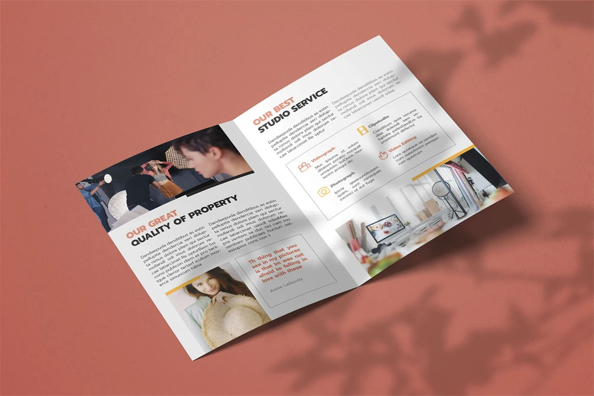 Photography Studio - Bifold Brochure We present this Bifold Brochure for you, simple and very elegant, and this Bifold Brochure is suitable for all types of your business, made with adobe inDesign, very easy to customize, Hope you Like it, dont forget to rate, Thanks.