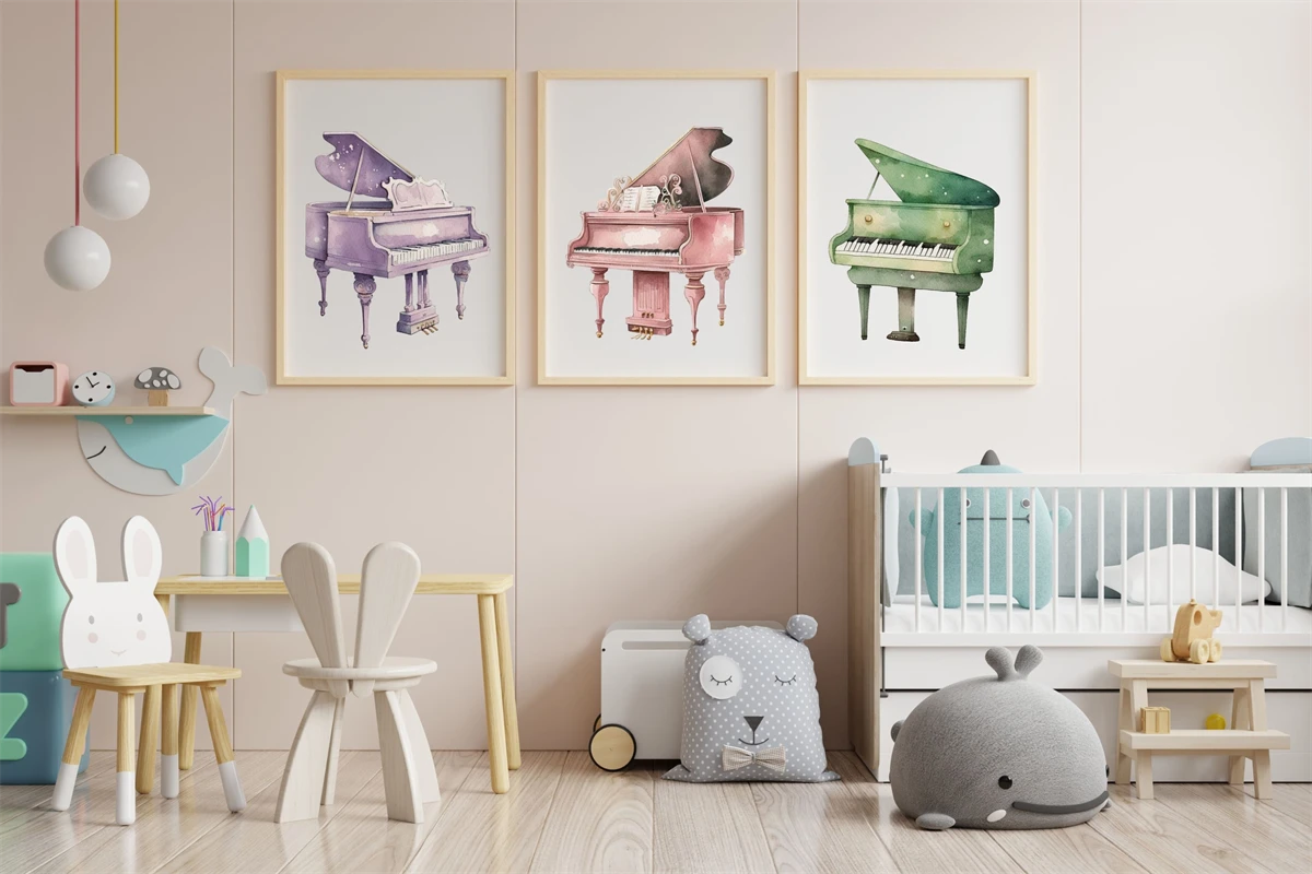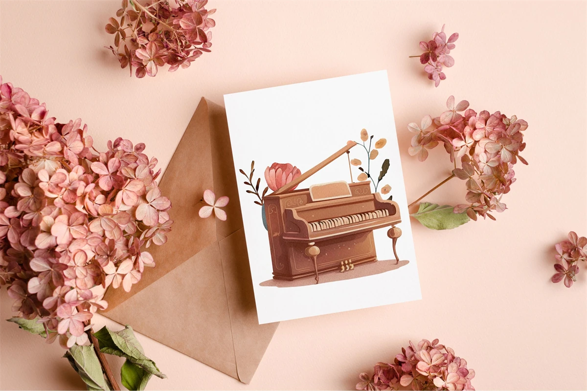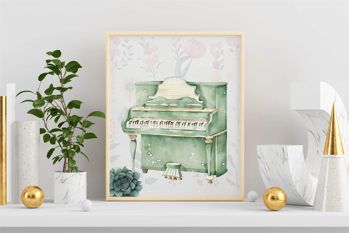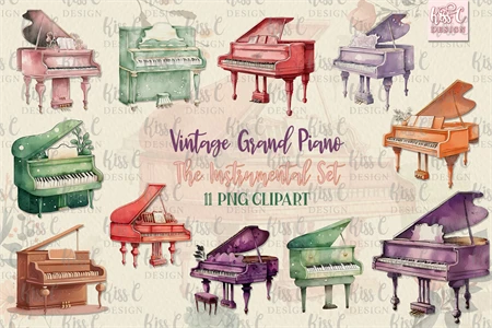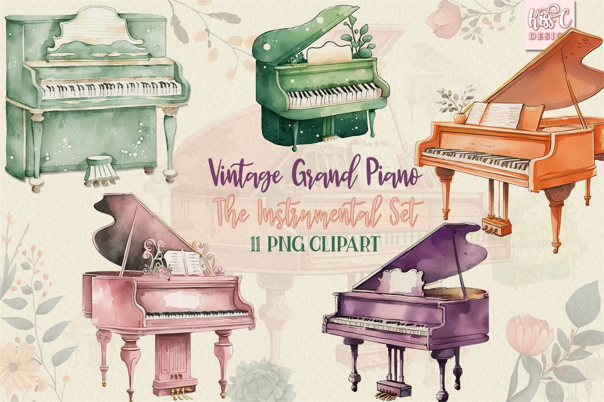 Piano Instrumental Set Watercolor Illustration Sublimation Clipart Collection