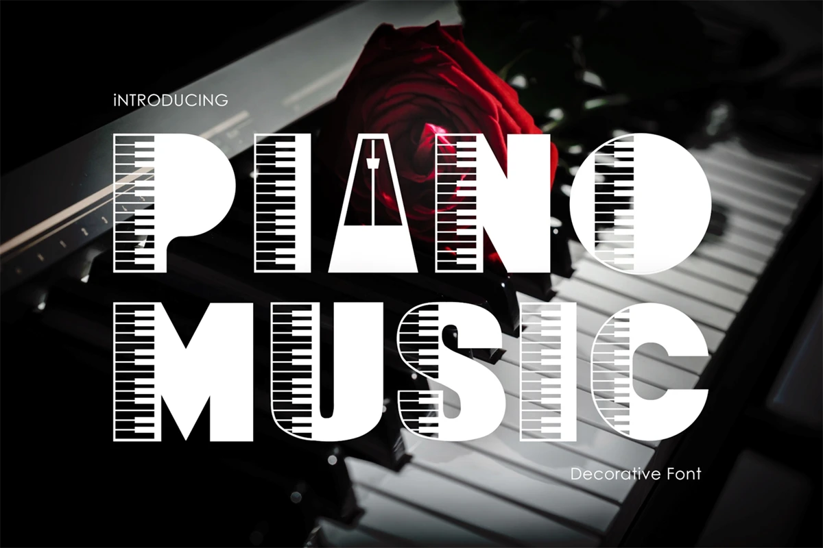 Piano Music is a decorative font. You can use it to create unique designs, music book covers, concert greeting cards, as well as many other creations that require a unique musical feel.