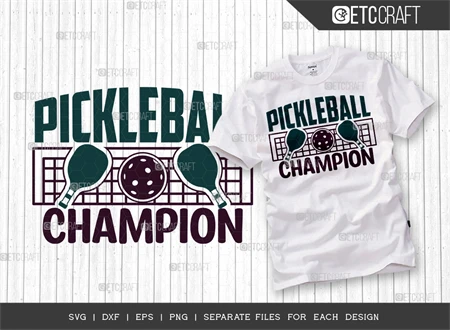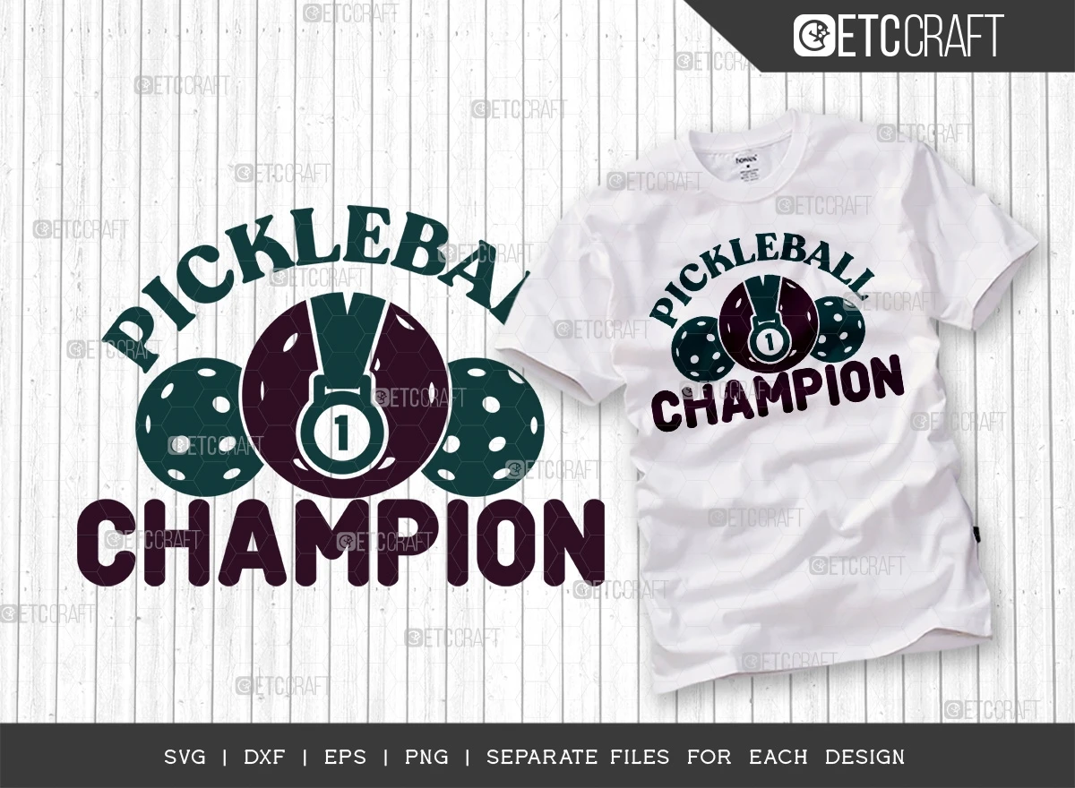 The Pickleball Champion SVG Bundle features professionally designed graphics with sharp details and vibrant colors, ensuring a top-notch visual appeal for your t-shirt designs.
