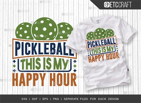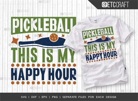 Introducing the Pickleball "This Is My Happy Hour" SVG Bundle! Show off your love for pickleball with this versatile and fun t-shirt design. Whether you're a seasoned pickleball player or a fan of this exciting sport, this SVG bundle has got you covered.