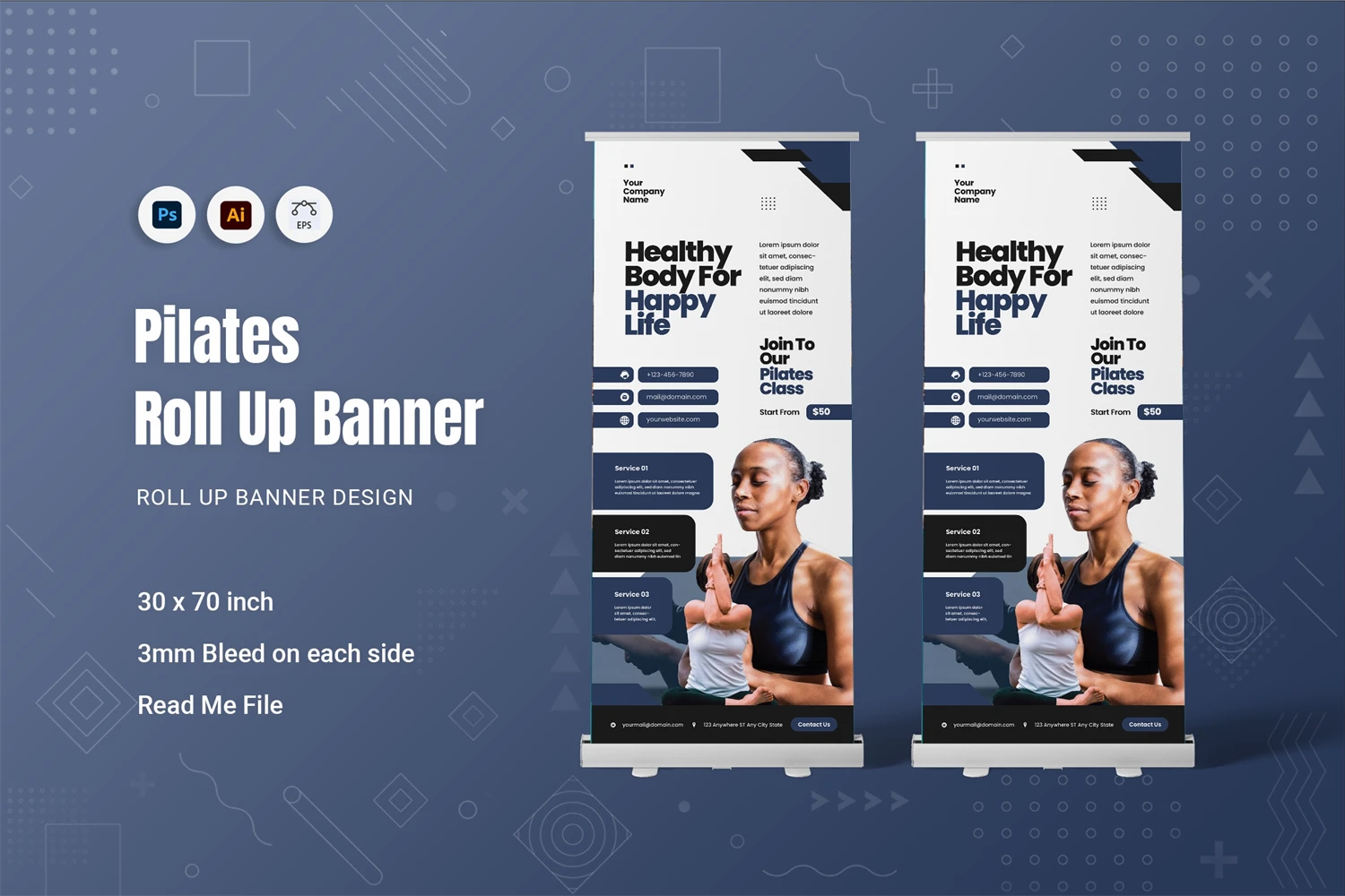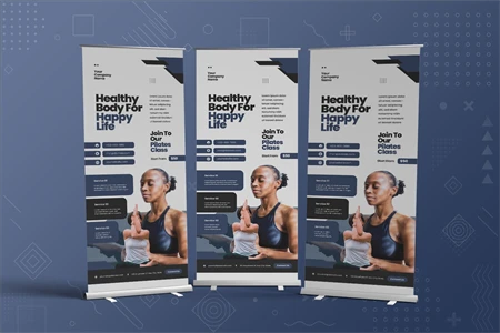 Instantly communicate your brand's through our roll-up banner template. Its standout design is optimized for the impactful presentation of visuals and content alike.