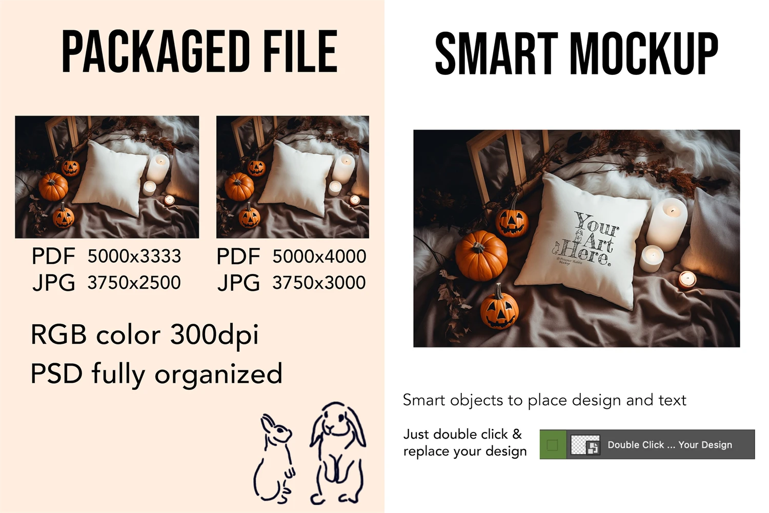 Pillow mockup, white square pillow smart mockup with Photoshop (PSD) template for logo design, sublimation, art and graphic designs