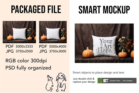 Pillow mockup, white square pillow smart mockup with Photoshop (PSD) template for logo design, sublimation, art and graphic designs