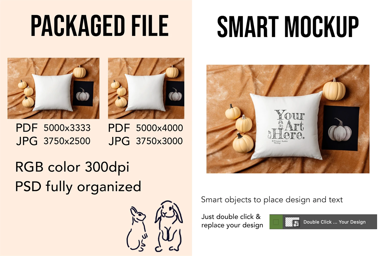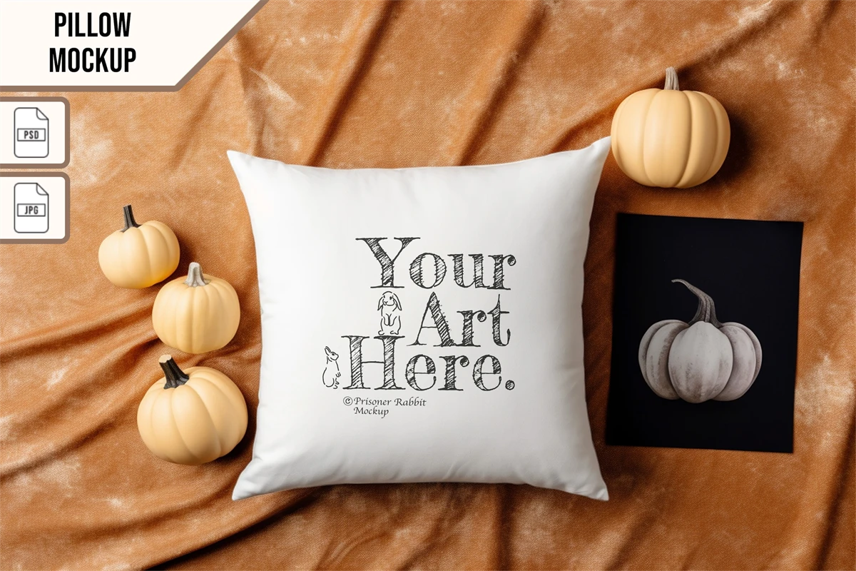 Pillow mockup, white square pillow smart mockup with Photoshop (PSD) template for logo design, sublimation, art and graphic designs