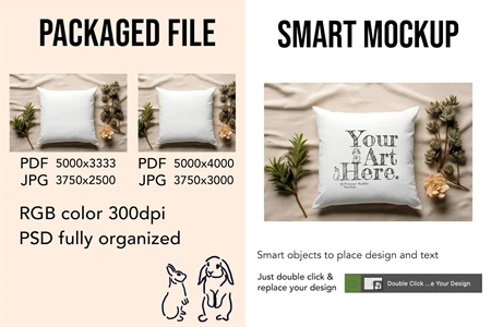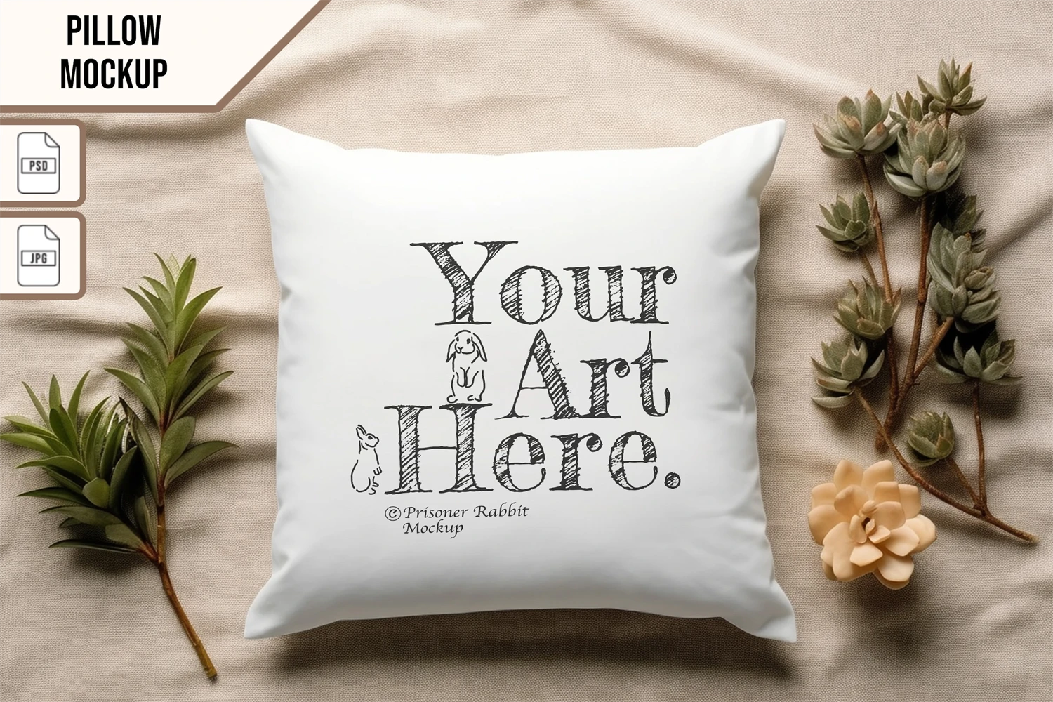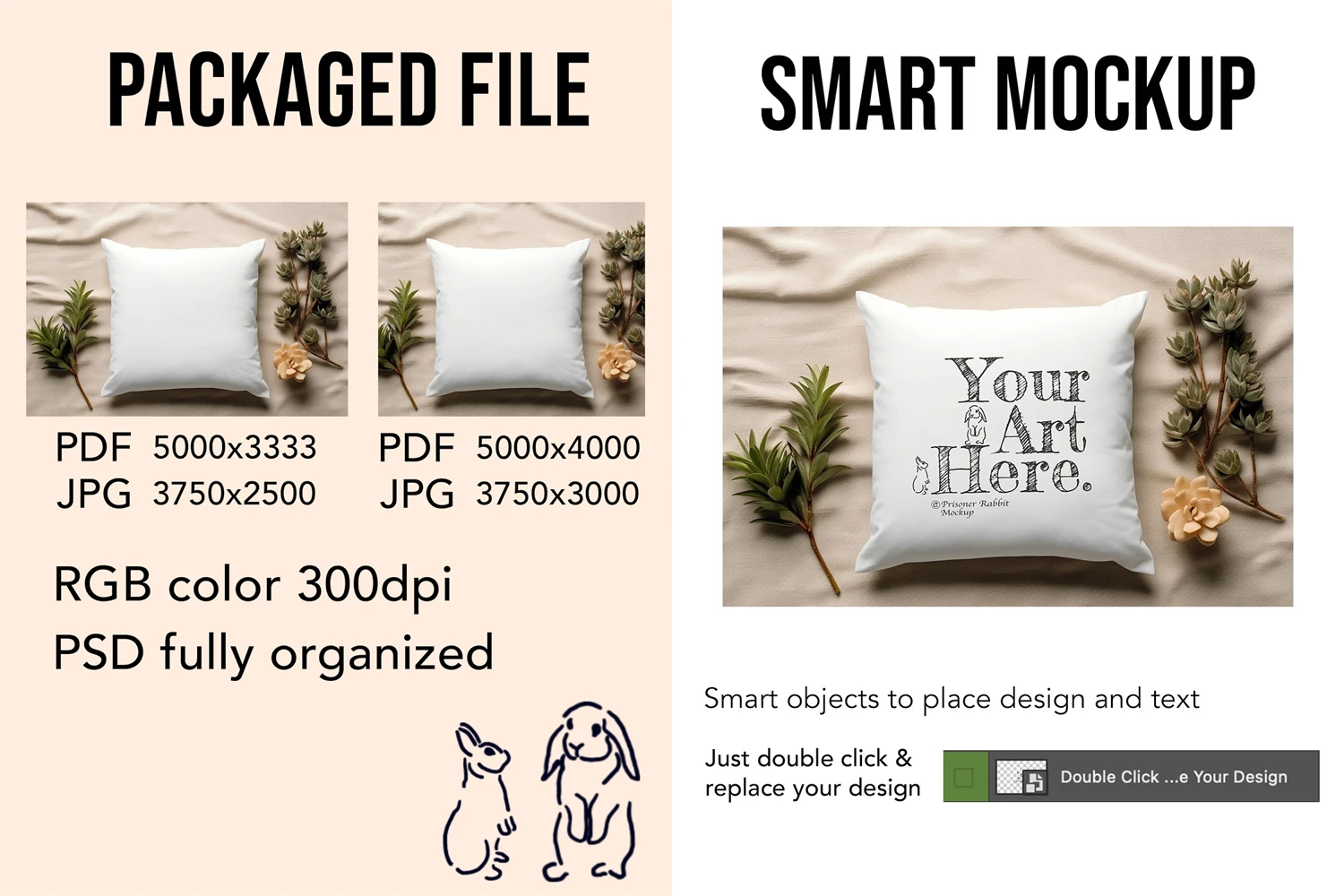 Pillow mockup, white square pillow smart mockup with Photoshop (PSD) template for logo design, sublimation, art and graphic designs