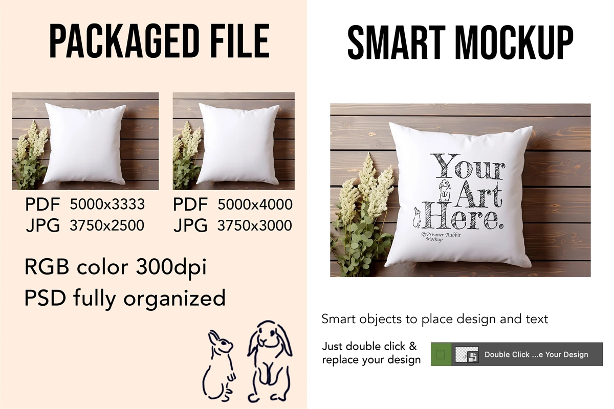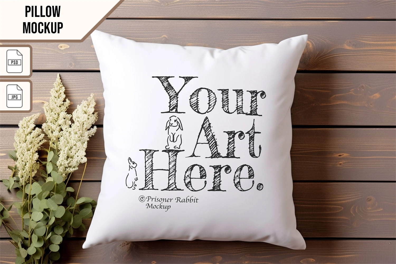 Pillow mockup, white square pillow smart mockup with Photoshop (PSD) template for logo design, sublimation, art and graphic designs