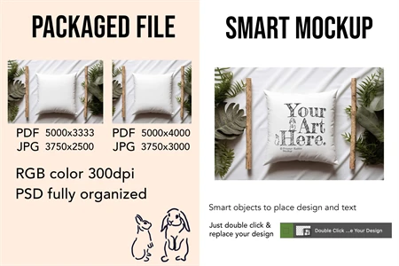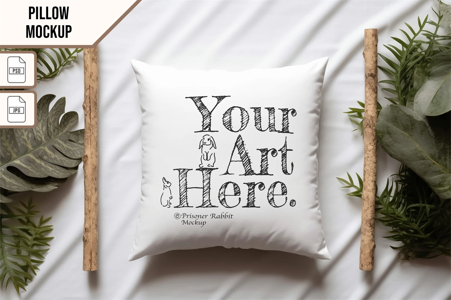 Pillow mockup, white square pillow smart mockup with Photoshop (PSD) template for logo design, sublimation, art and graphic designs