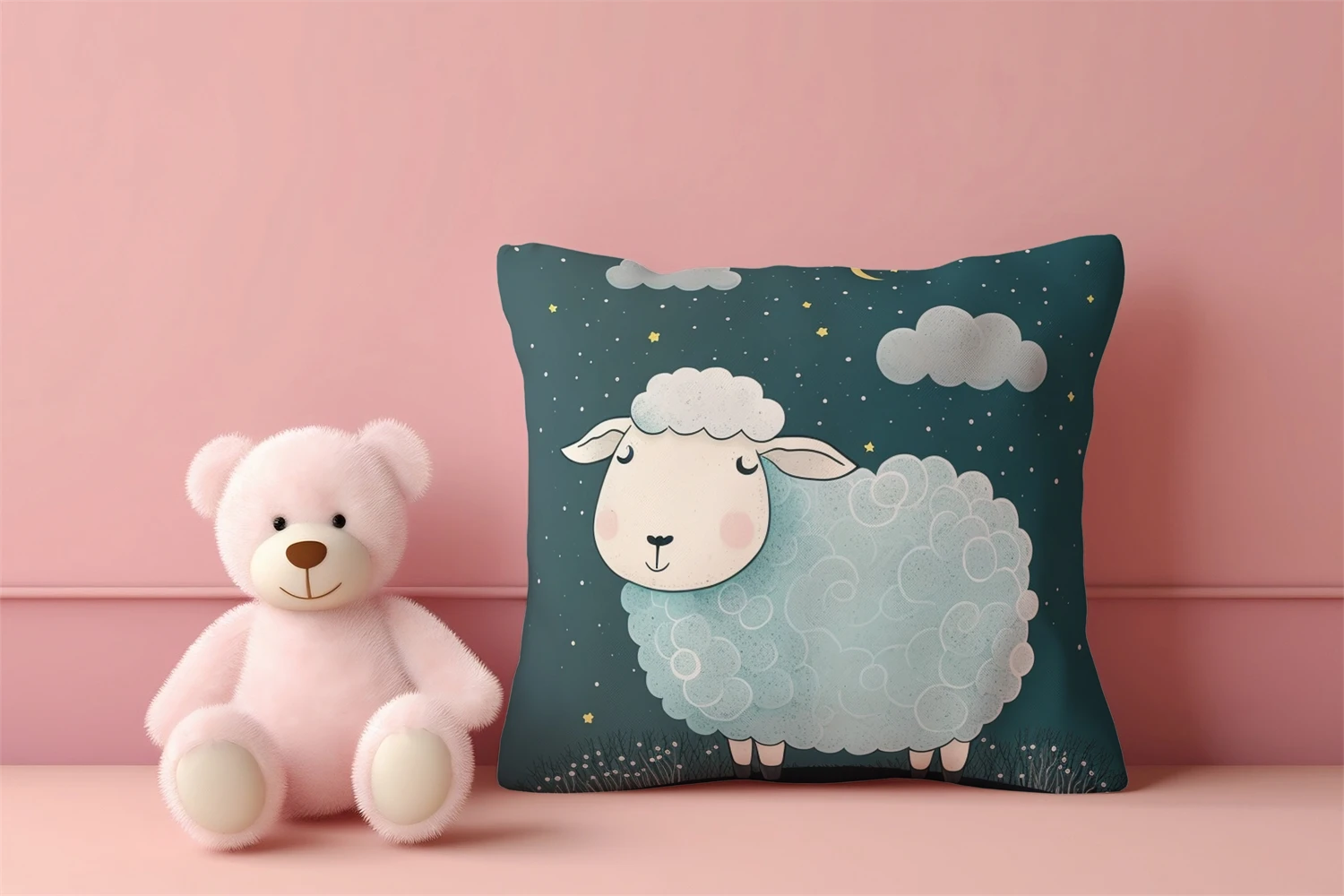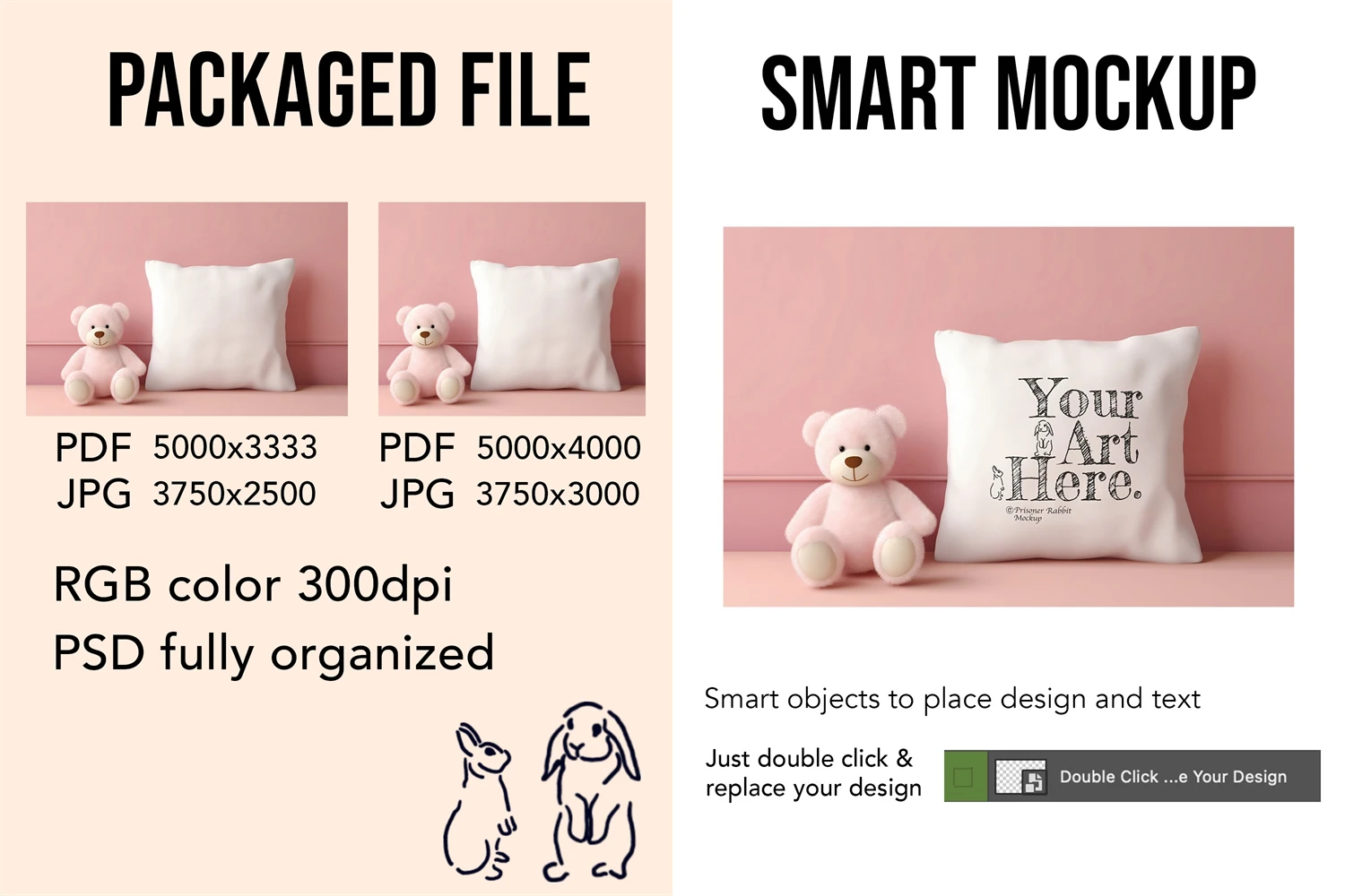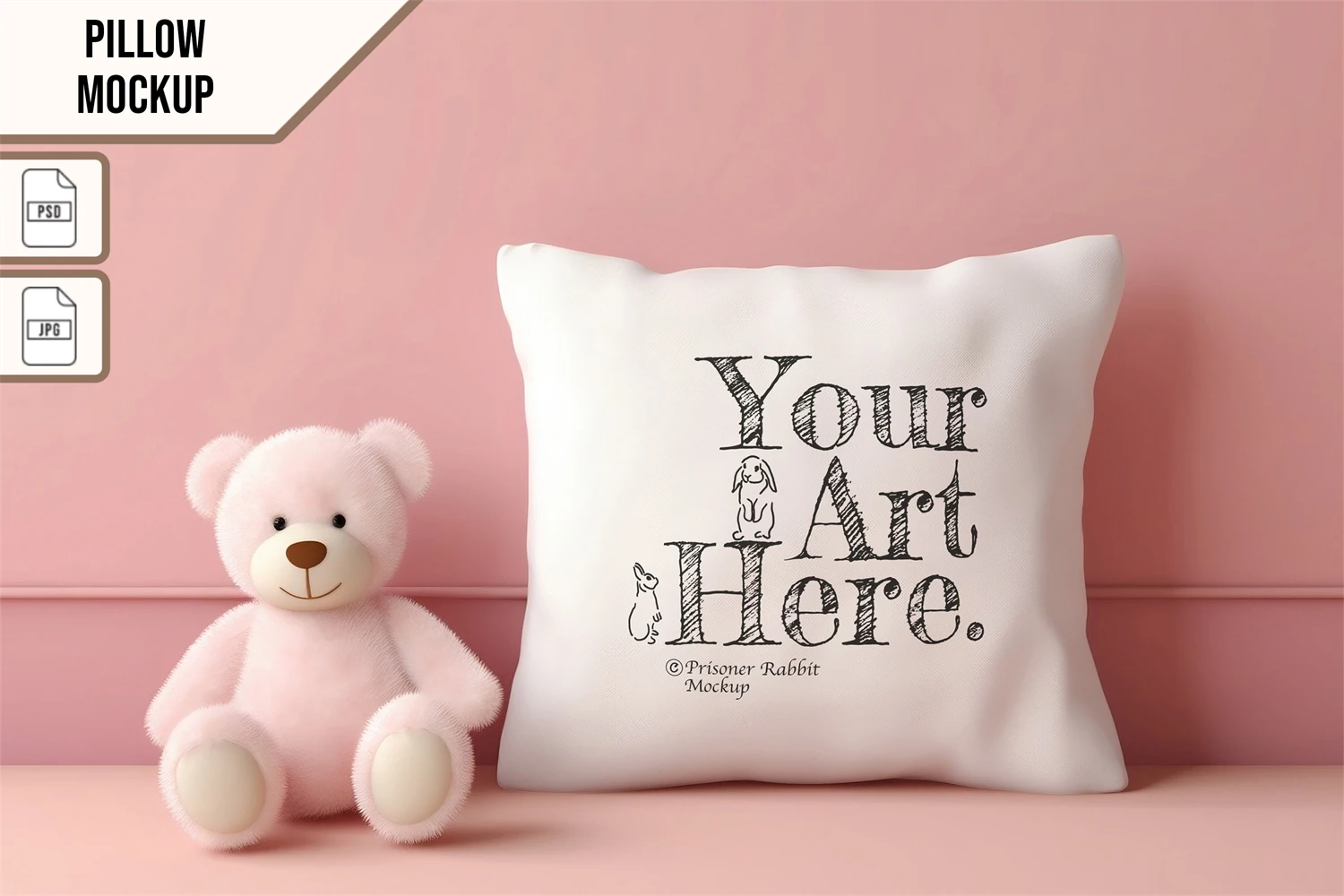 Pillow mockup, white square pillow smart mockup with Photoshop (PSD) template for logo design, sublimation, art and graphic designs