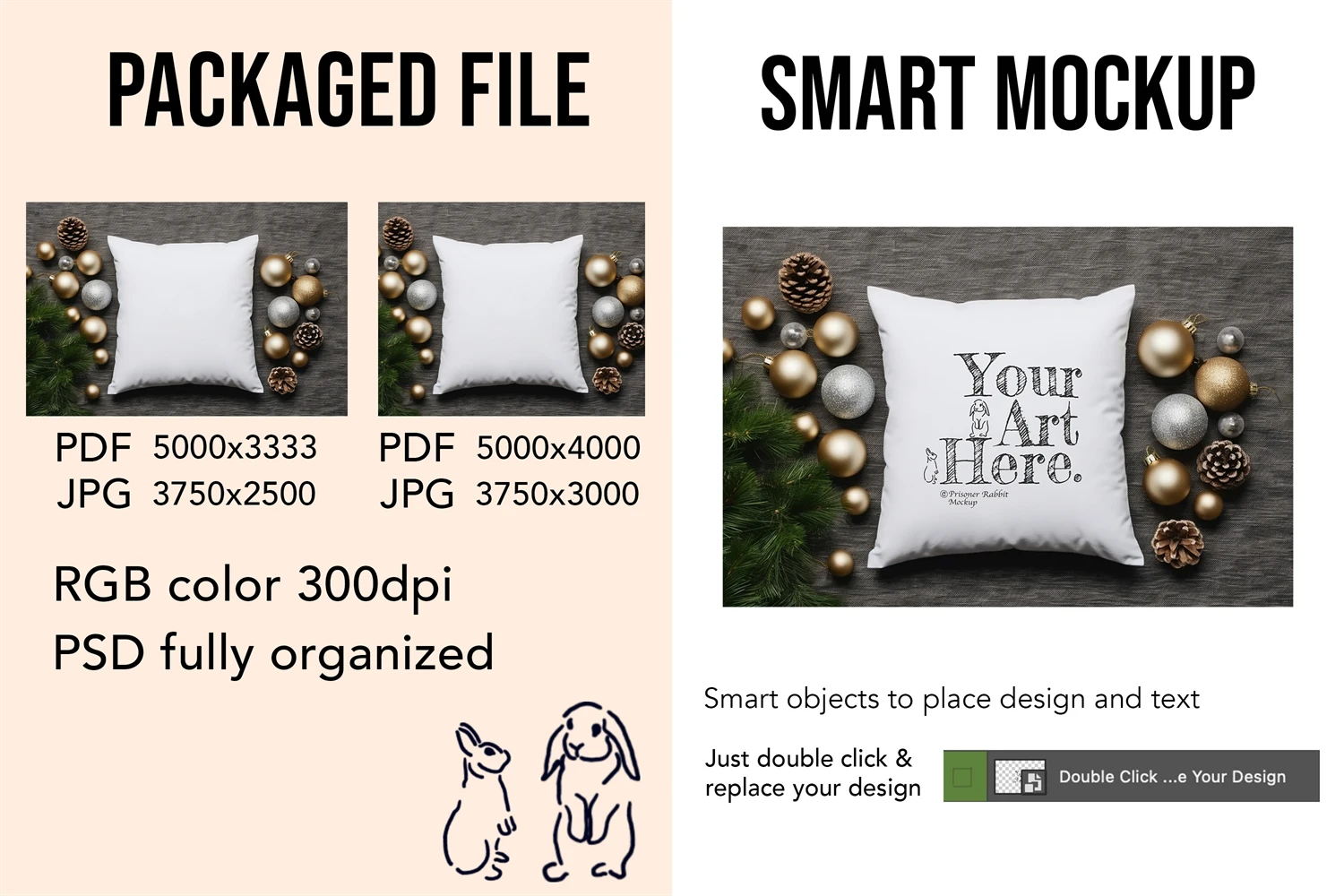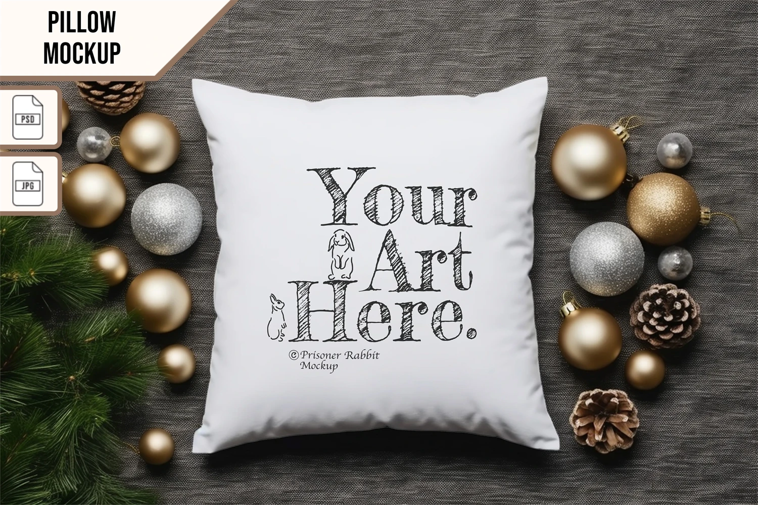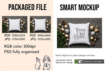 Pillow mockup, white square pillow smart mockup with Photoshop (PSD) template for logo design, sublimation, art and graphic designs