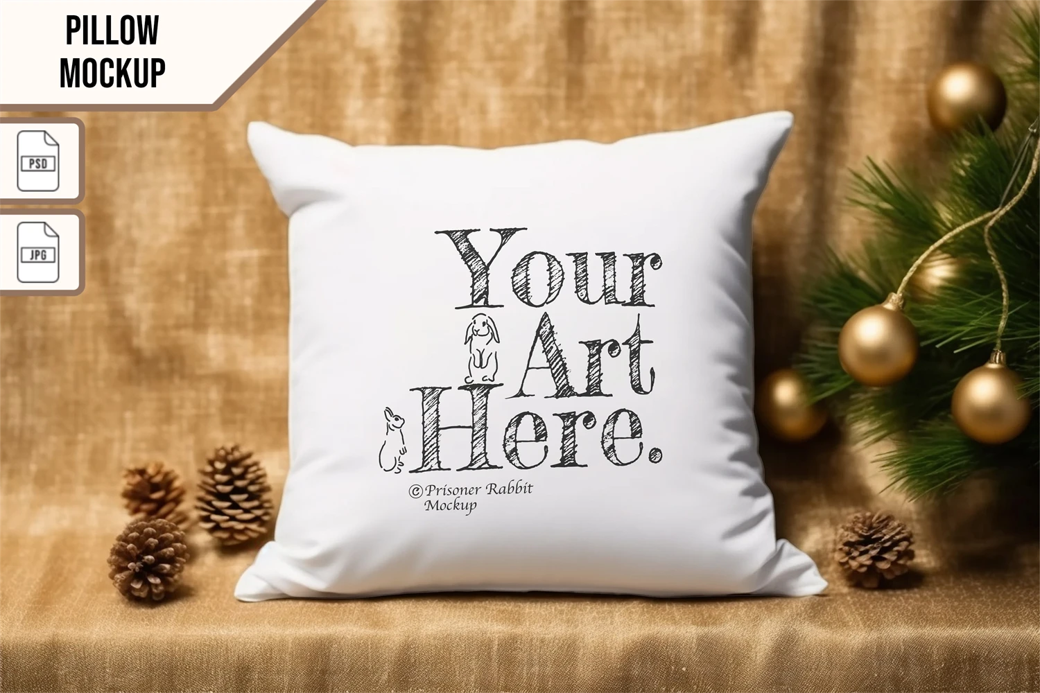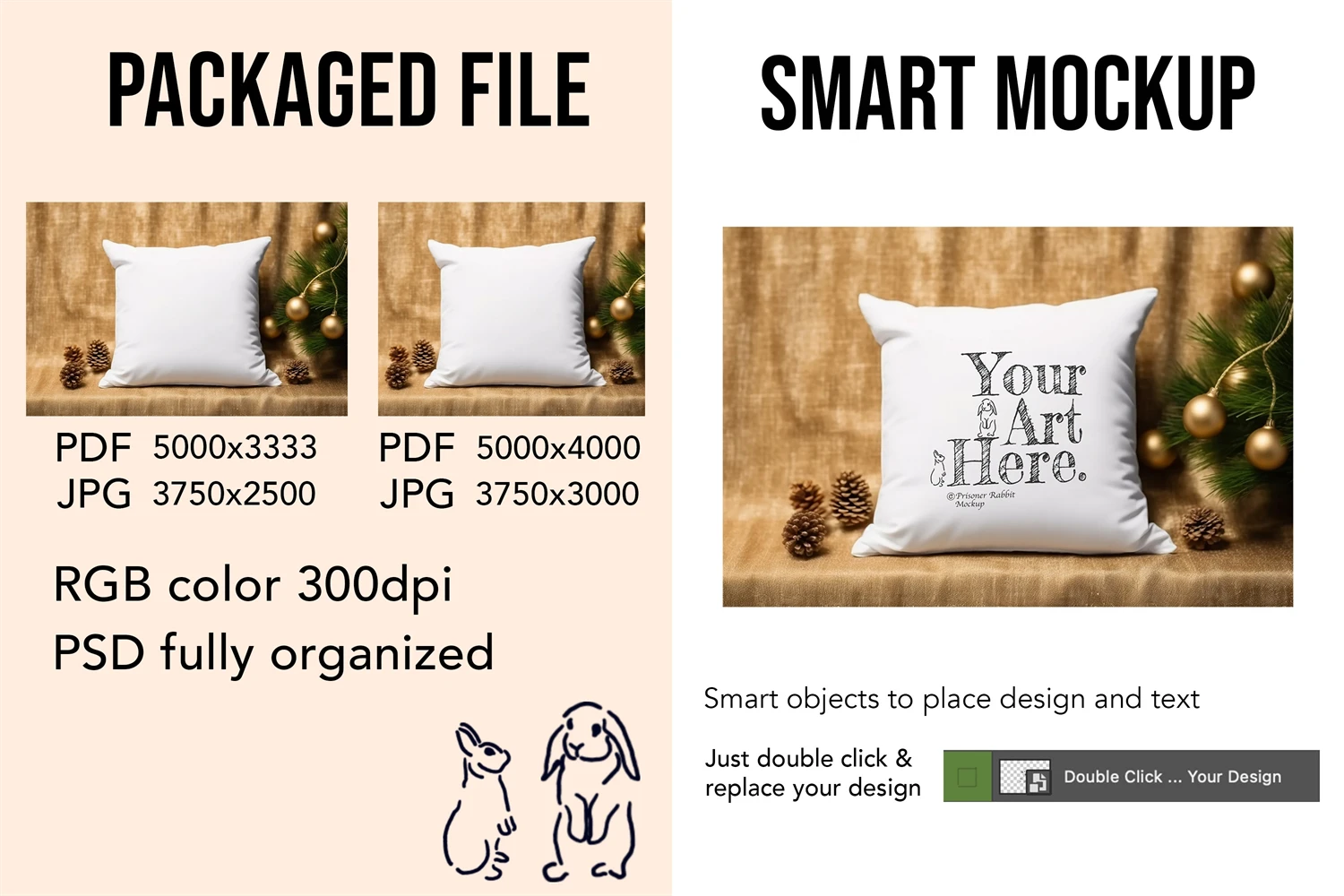 Pillow mockup, white square pillow smart mockup with Photoshop (PSD) template for logo design, sublimation, art and graphic designs