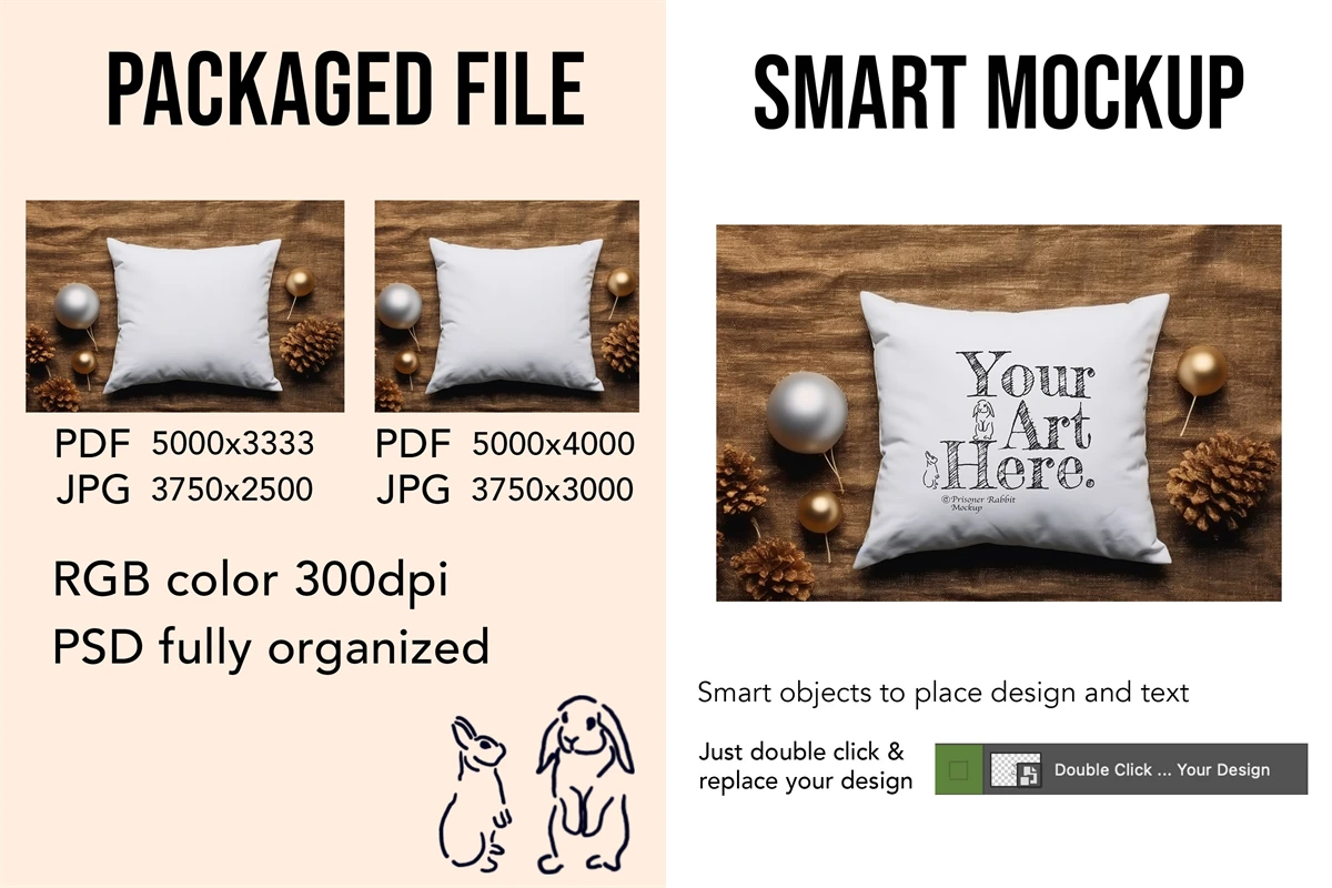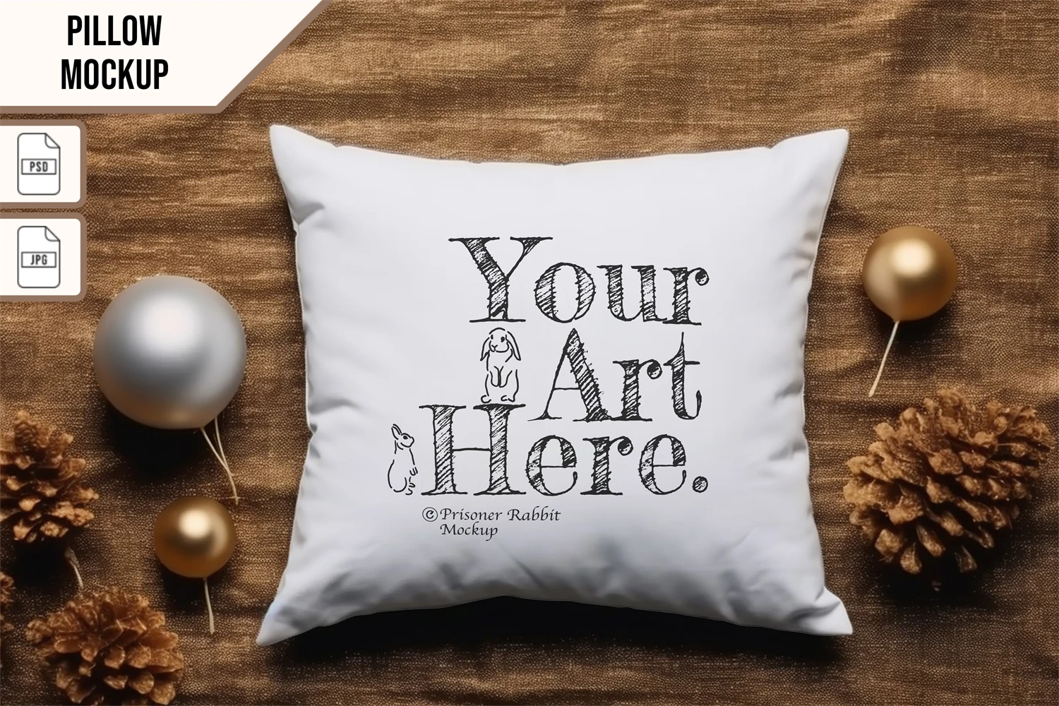 Pillow mockup, white square pillow smart mockup with Photoshop (PSD) template for logo design, sublimation, art and graphic designs