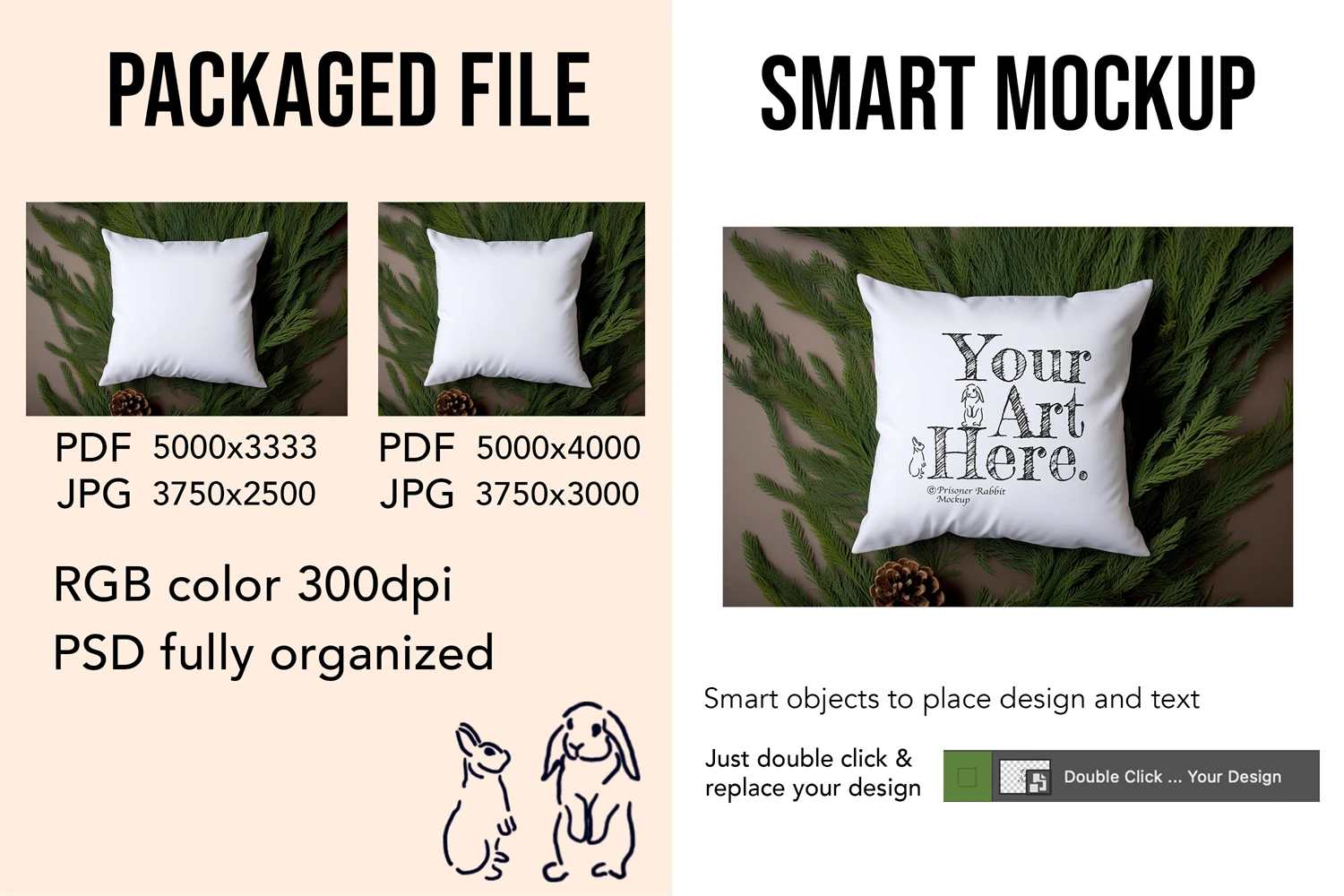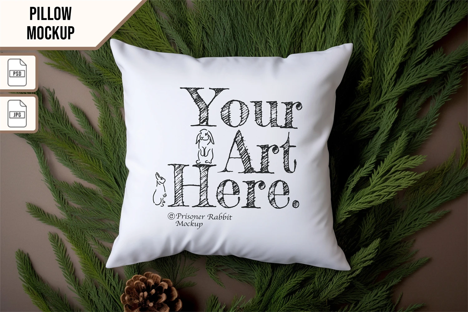Pillow mockup, white square pillow smart mockup with Photoshop (PSD) template for logo design, sublimation, art and graphic designs