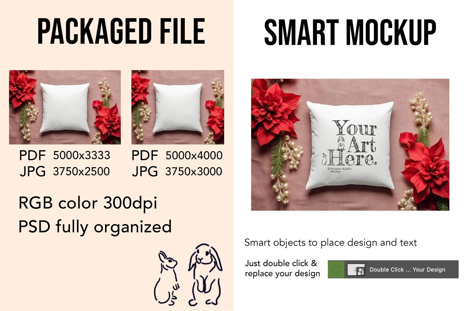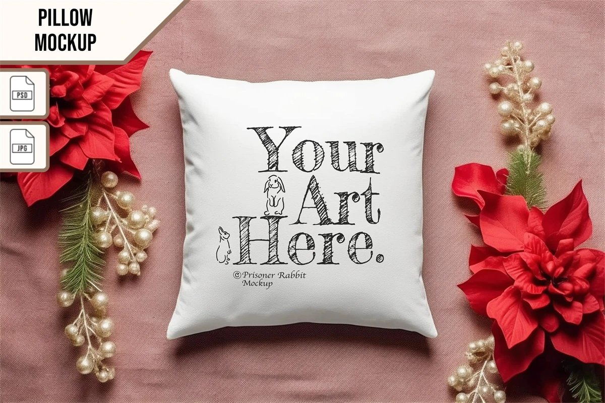Pillow mockup, white square pillow smart mockup with Photoshop (PSD) template for logo design, sublimation, art and graphic designs