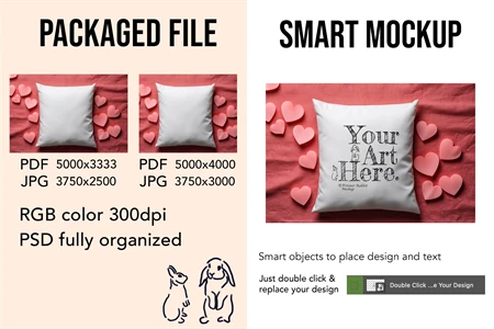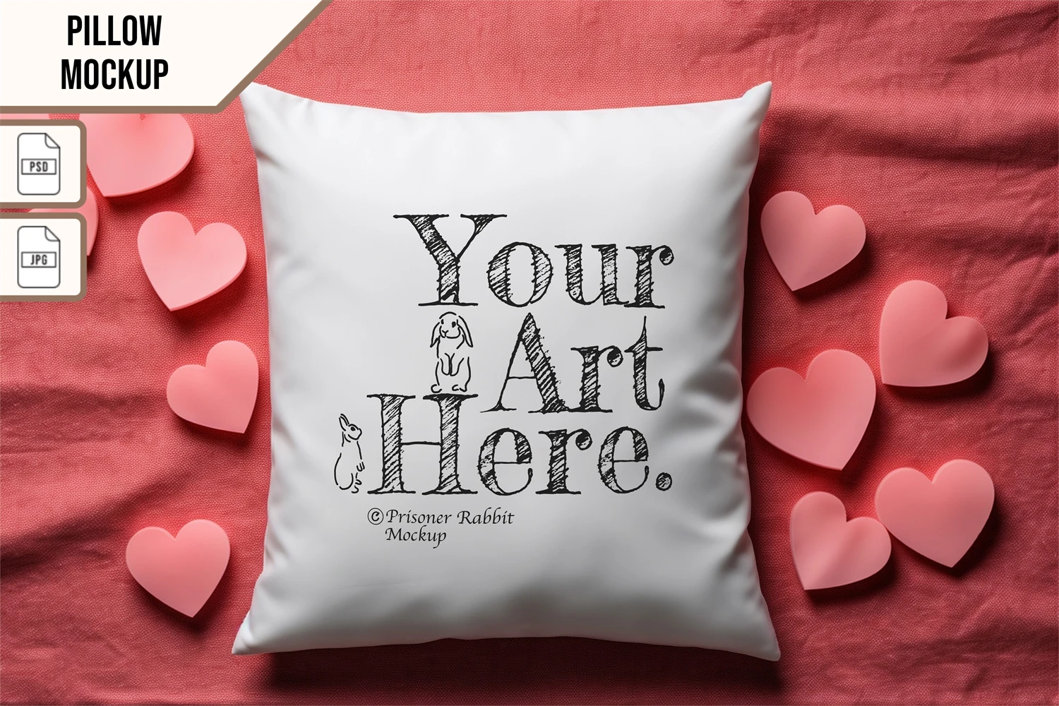 Pillow mockup, white square pillow smart mockup with Photoshop (PSD) template for logo design, sublimation, art and graphic designs