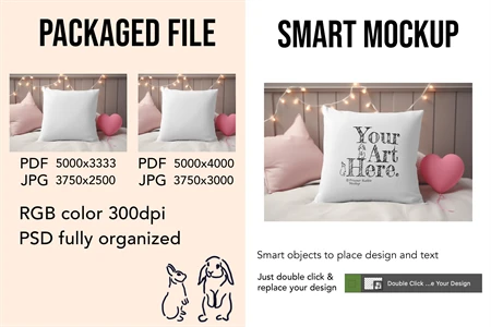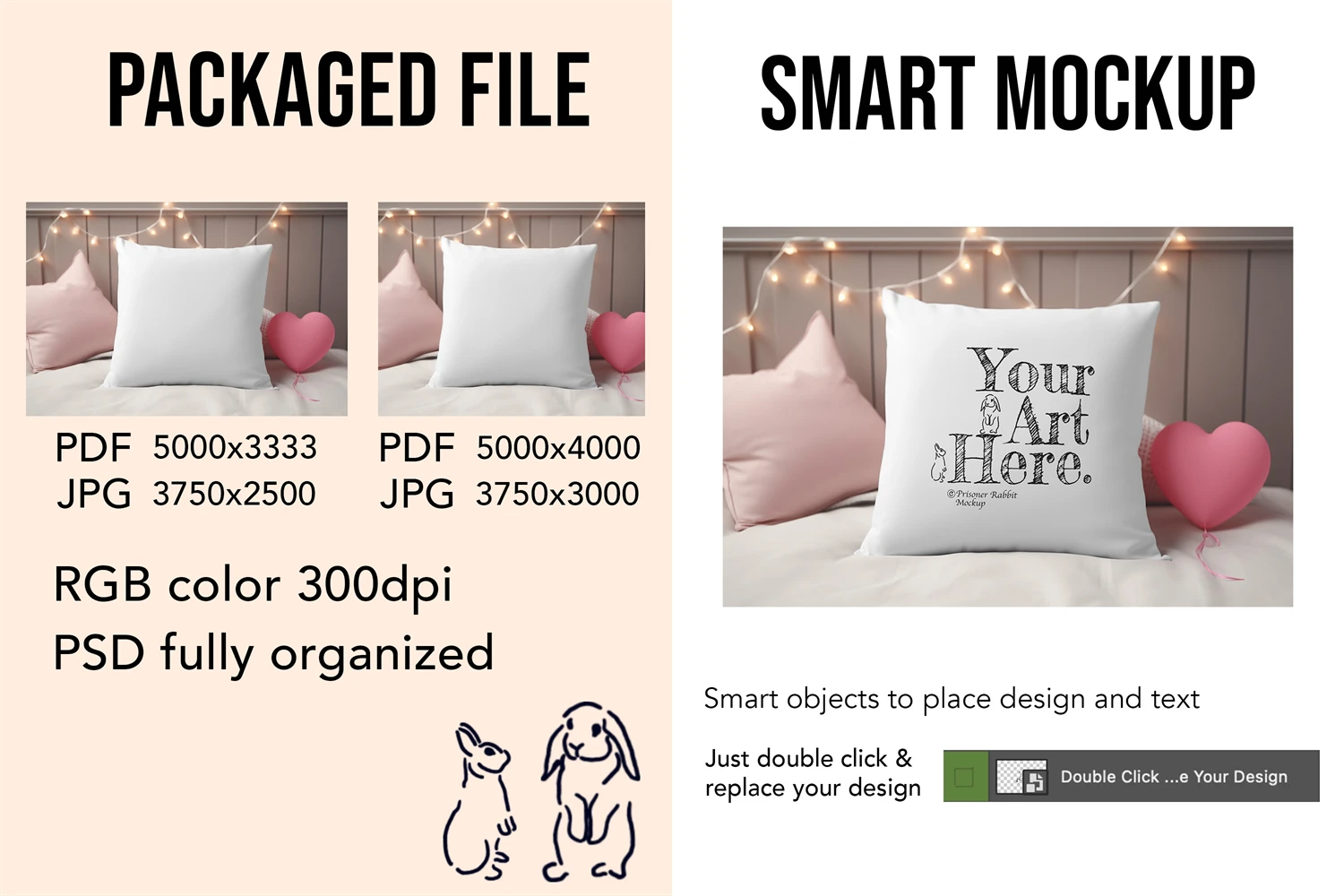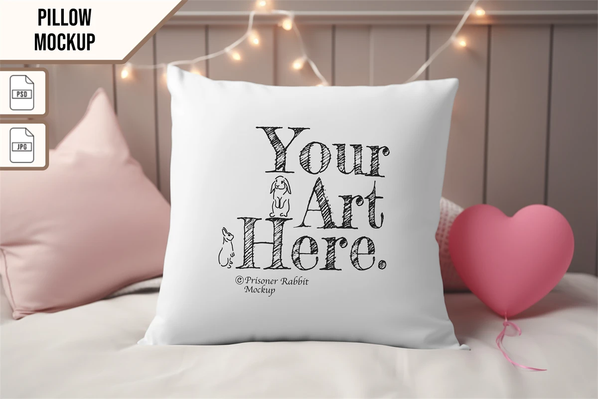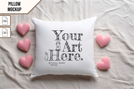 Pillow mockup, white square pillow smart mockup with Photoshop (PSD) template for logo design, sublimation, art and graphic designs