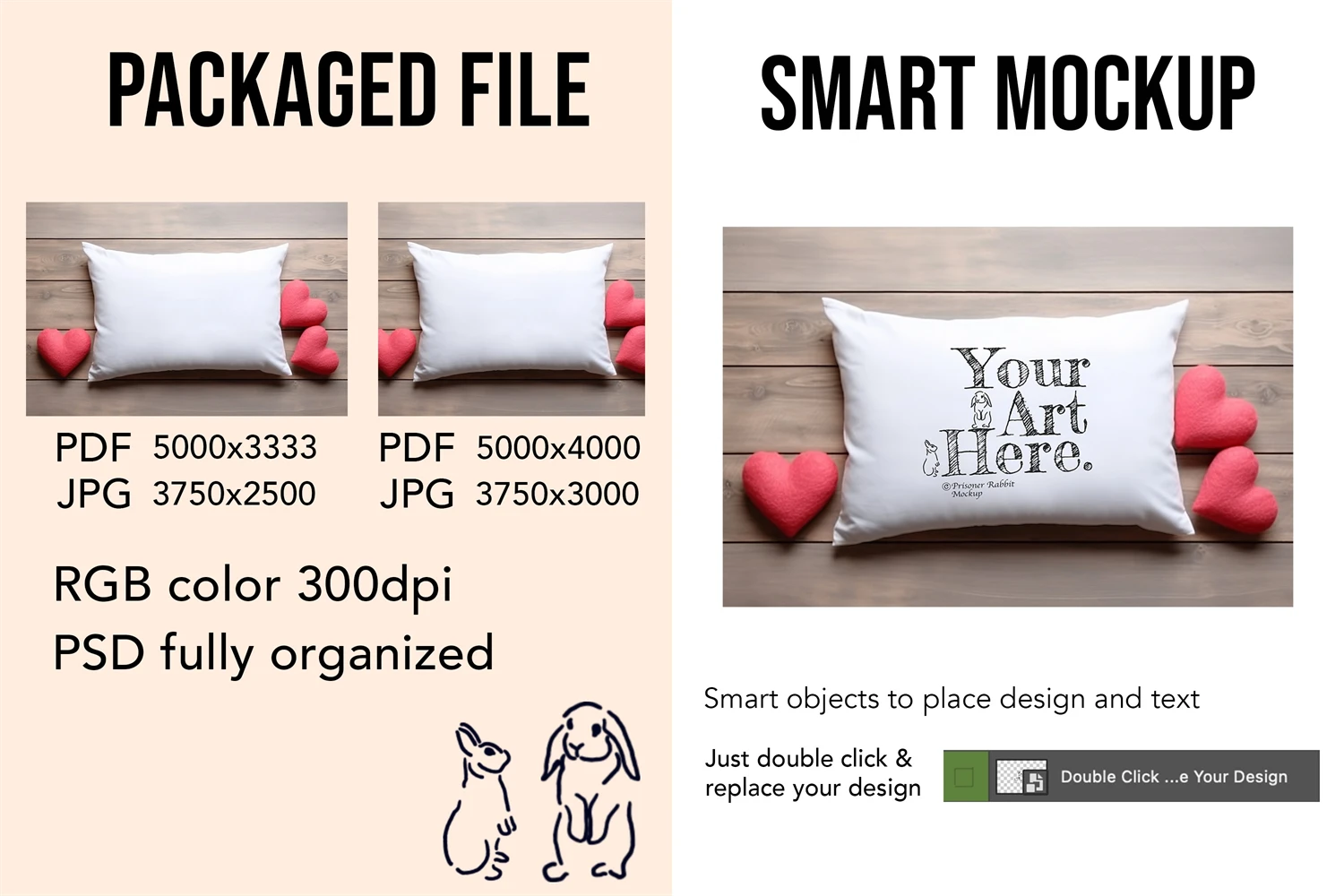 Pillow mockup, white square pillow smart mockup with Photoshop (PSD) template for logo design, sublimation, art and graphic designs