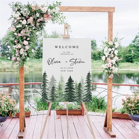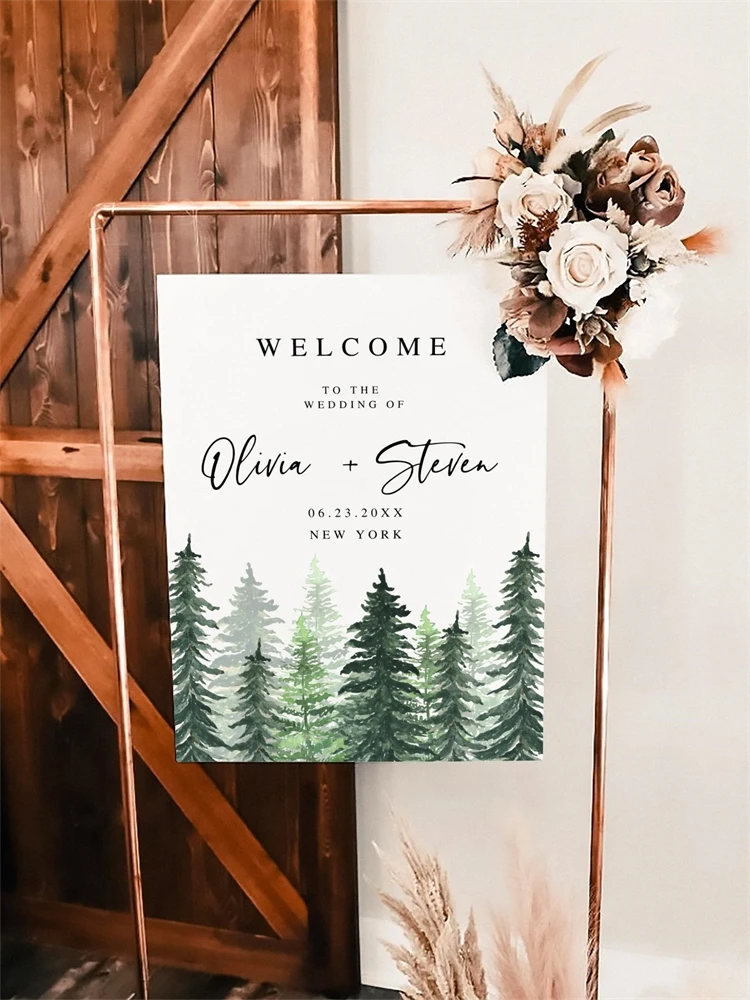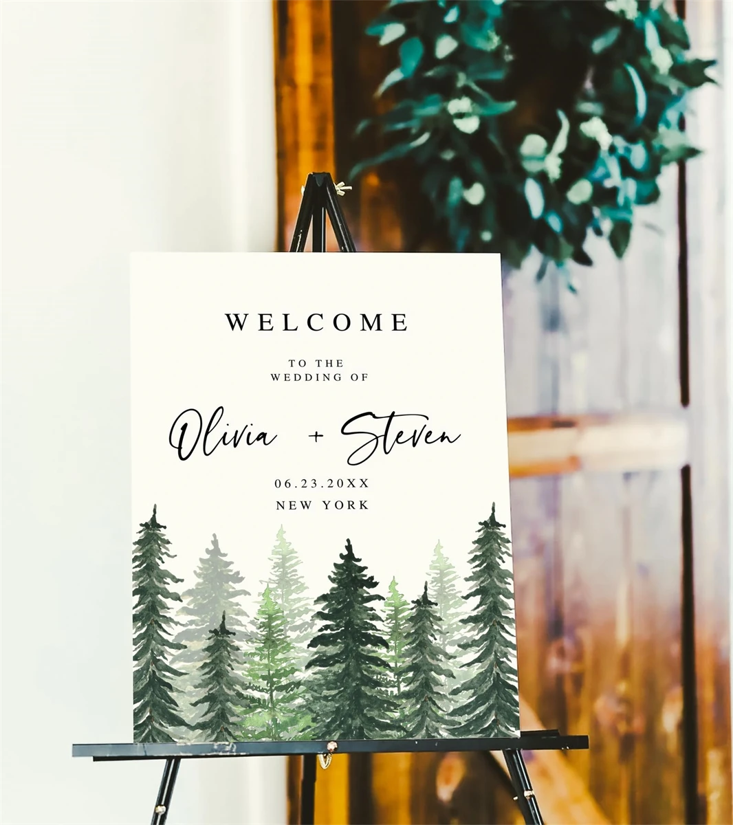 Pine Welcome Sign, Lake, Printable Wedding Rustic,Canva