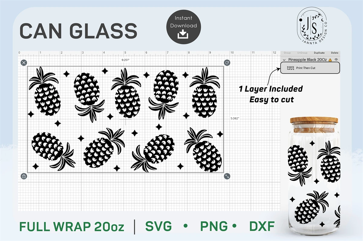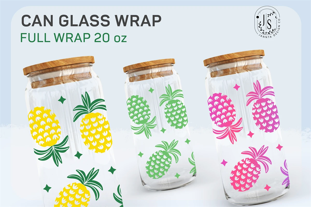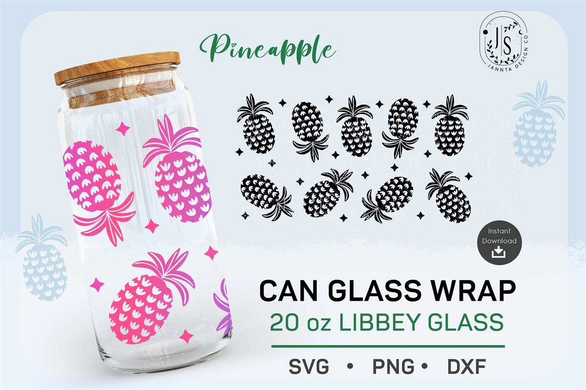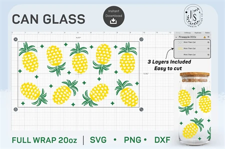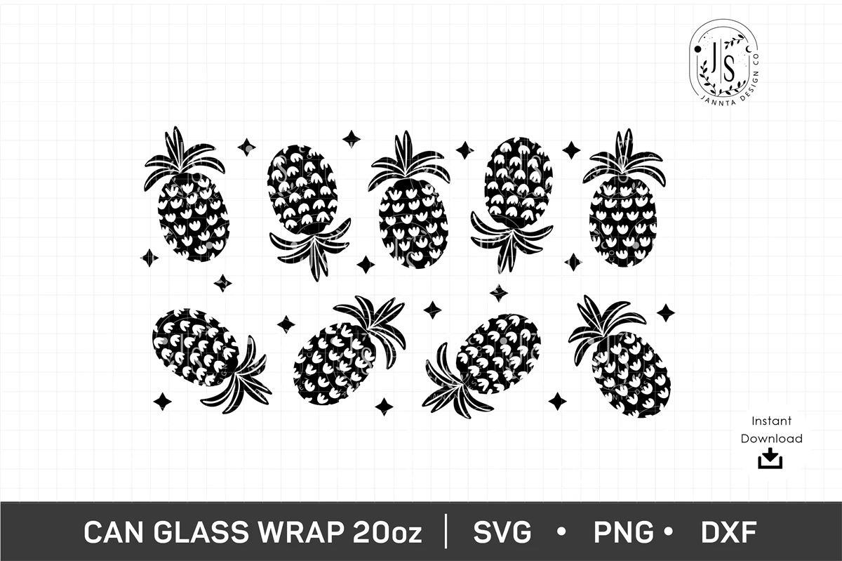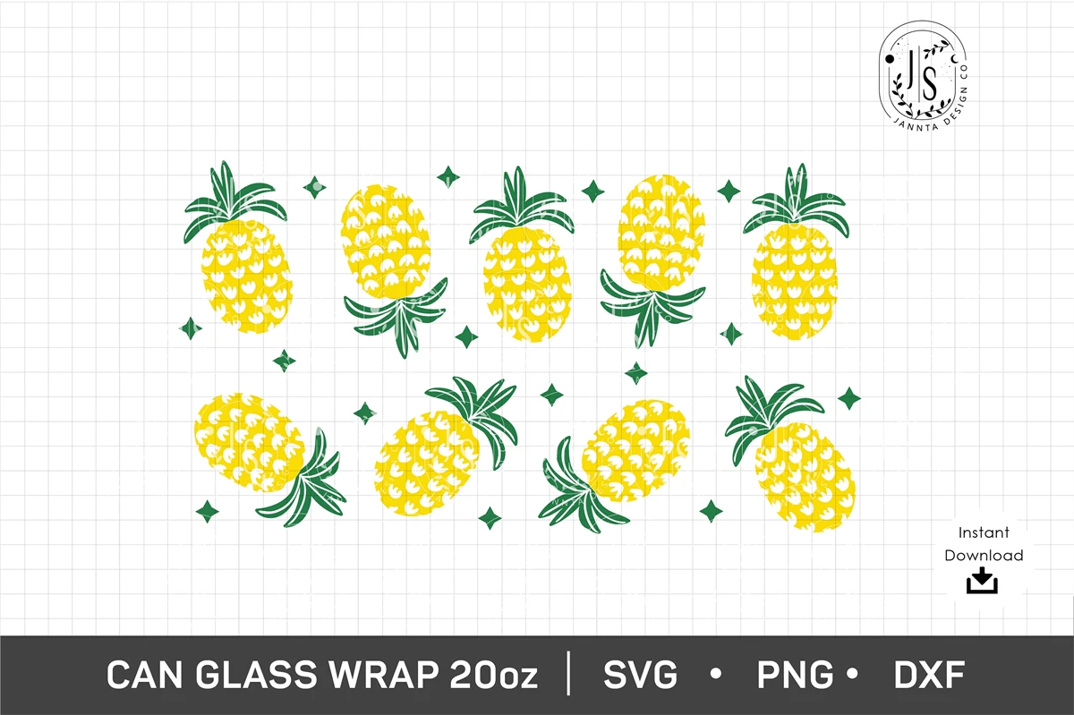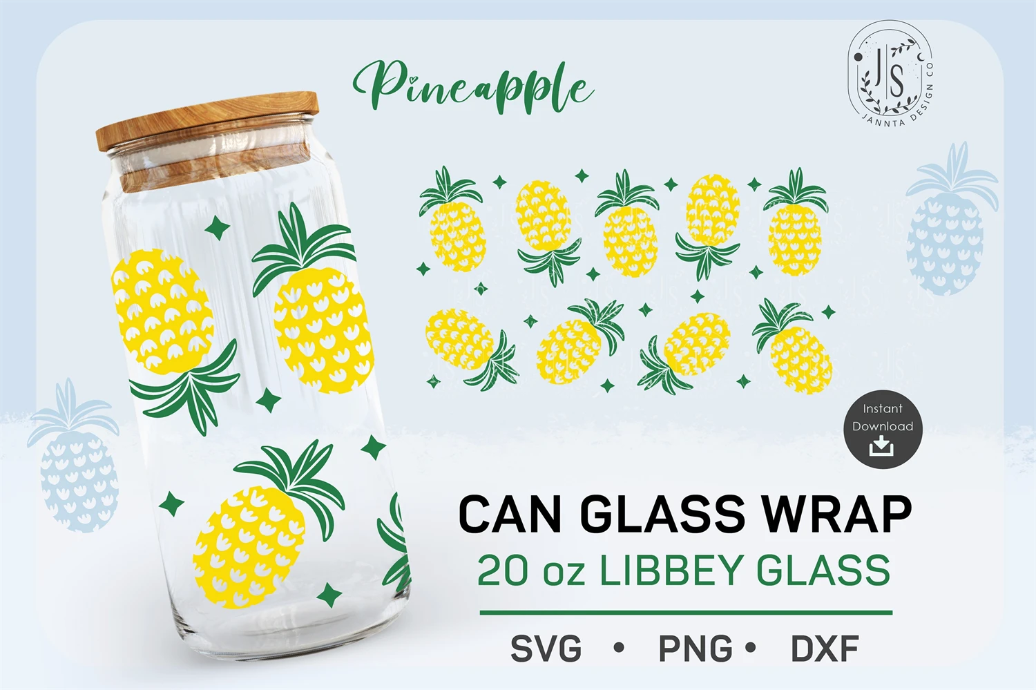 Pineapple Fruit SVG, Summer Fruits PNG, Can Glass Wrap SVG 20oz, Full Wrap for Can Glass, Seamless Wraps, PNG Digital Download Template