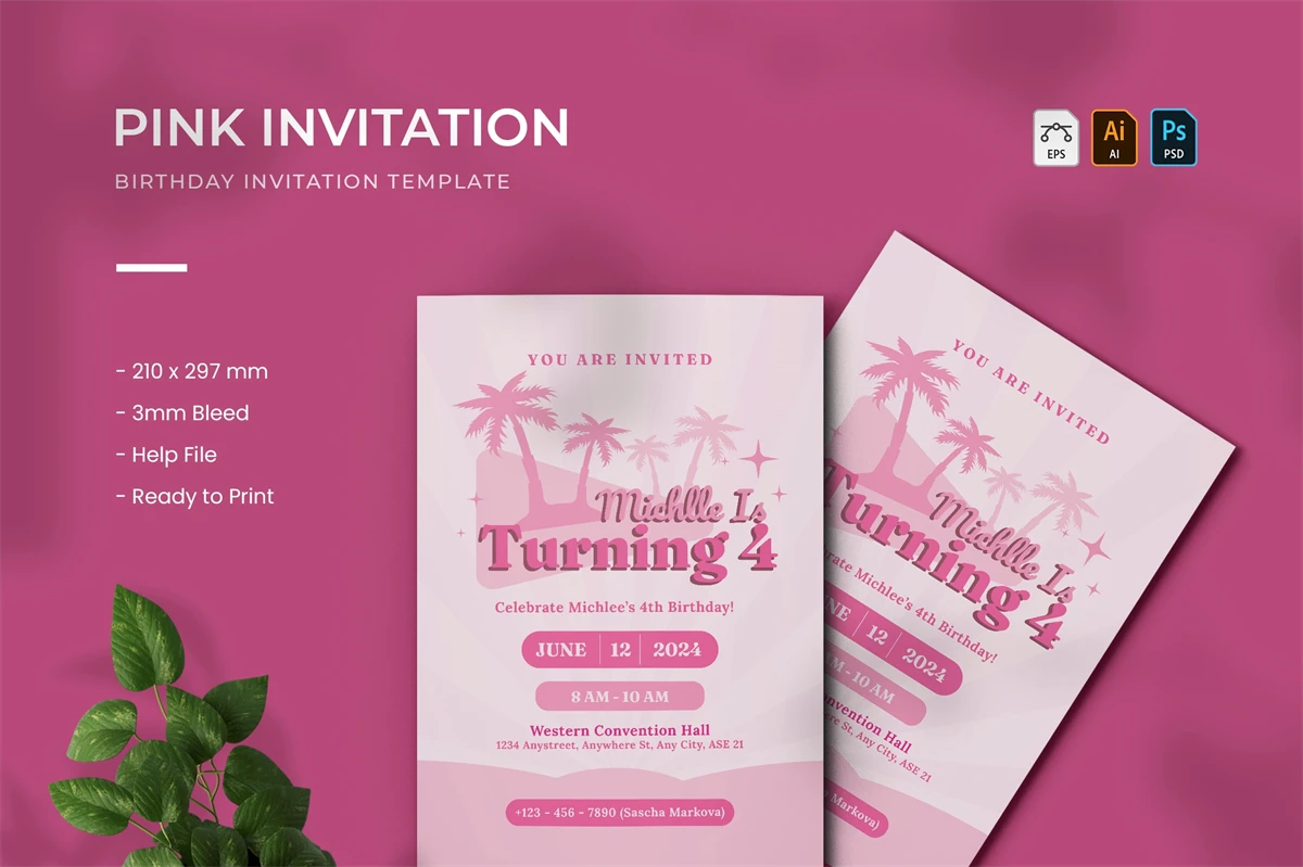 * 1 Pages Birthday Invitation Easy Editing