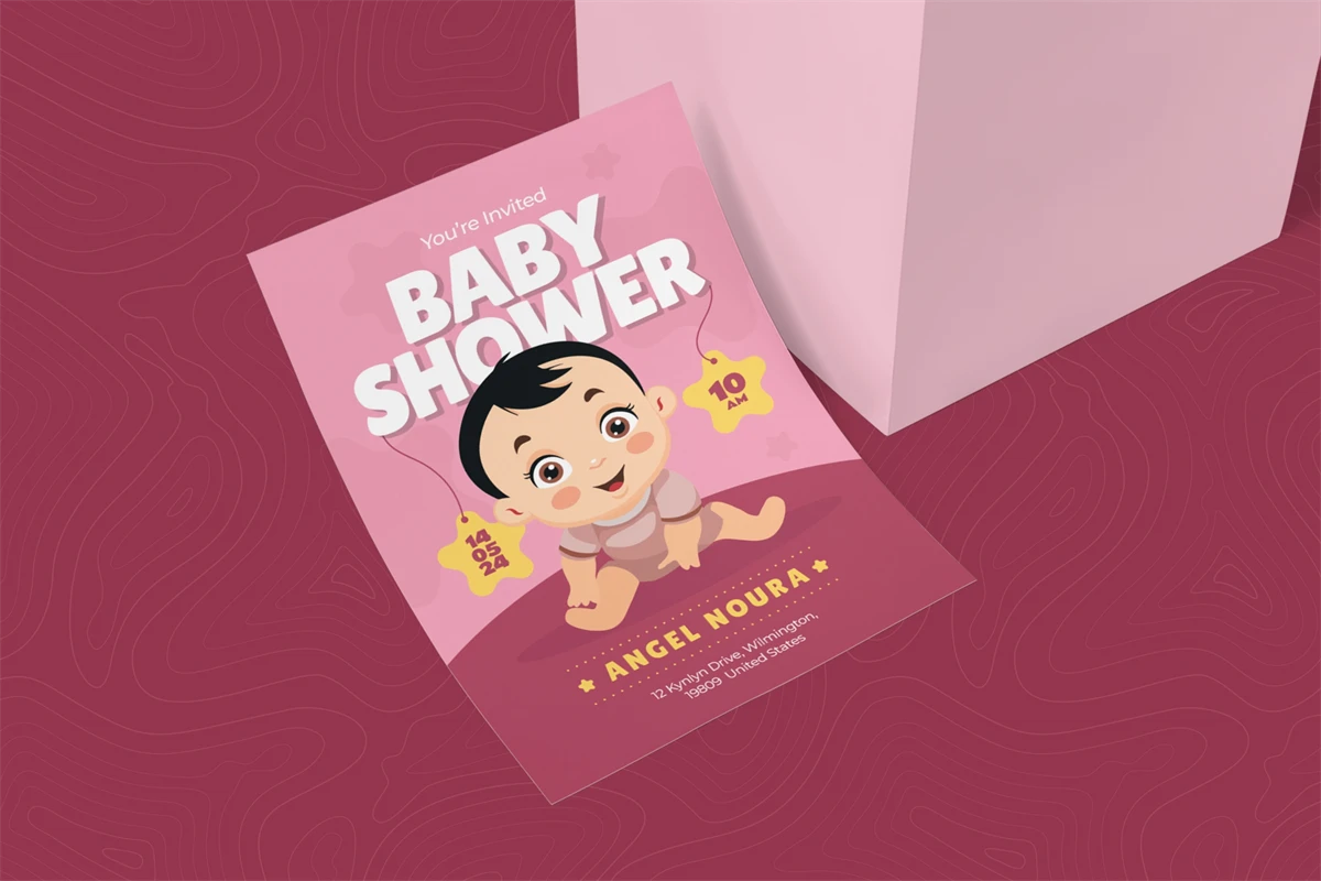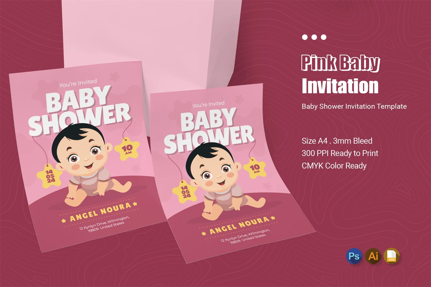 This baby shower invitation card template makes your invitation card look enjoyable, professional, and also simple. It's perfect for parents who want to celebrate the birth of their baby. You can easily to customize to your needs if using **illustrator** you just need to Drag your Image, select the image and placeholder, then right click select Make