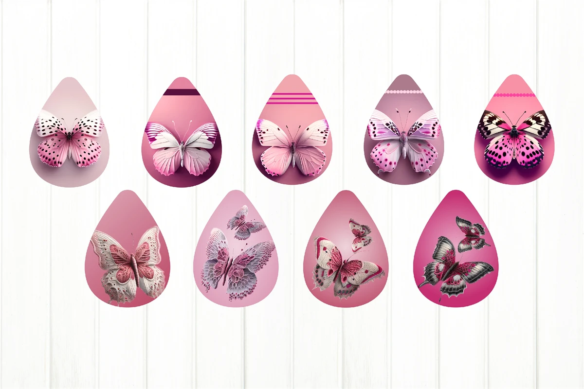 12 Earrings teardrops, sized 2,2*1.5 inches, 300DPI