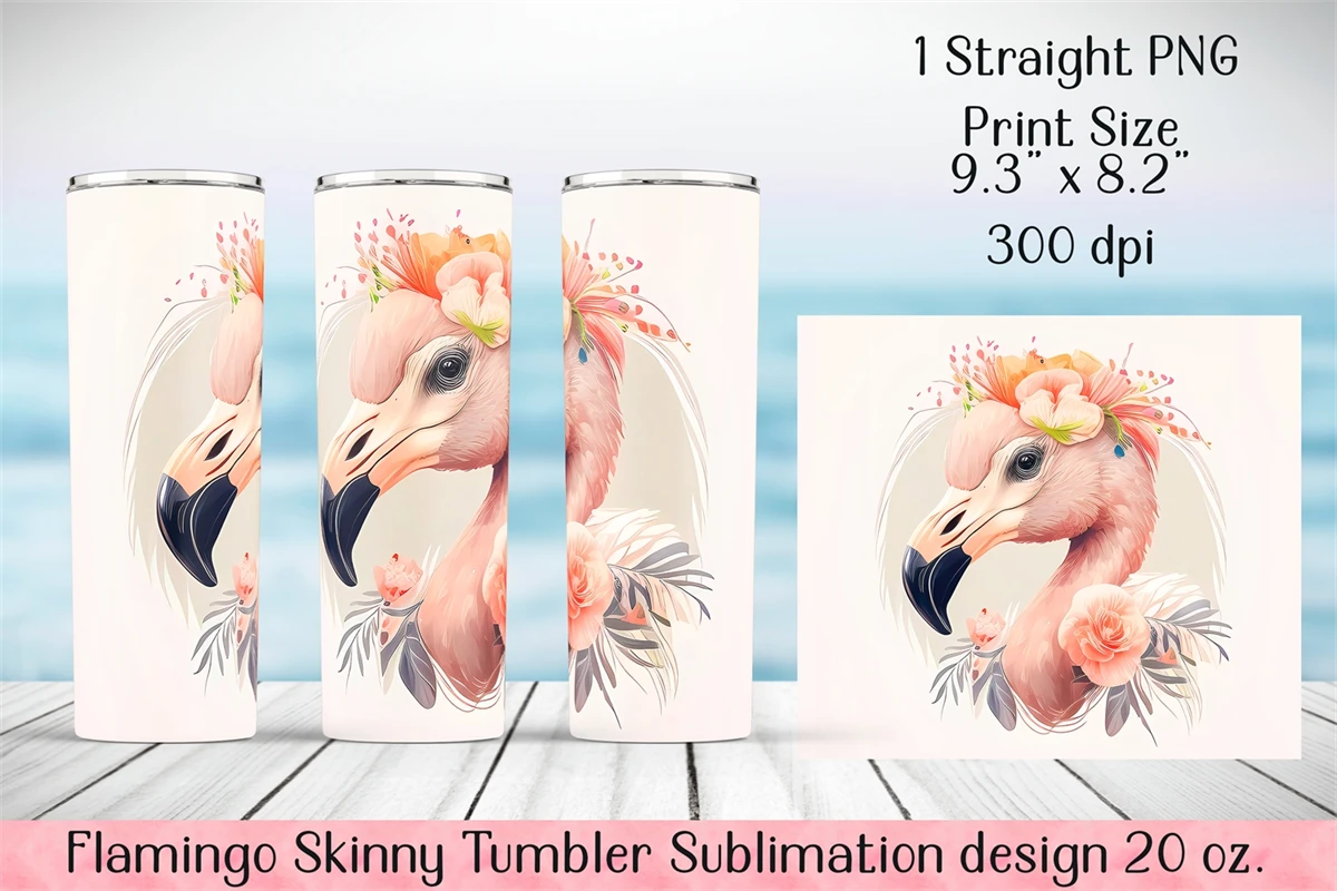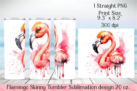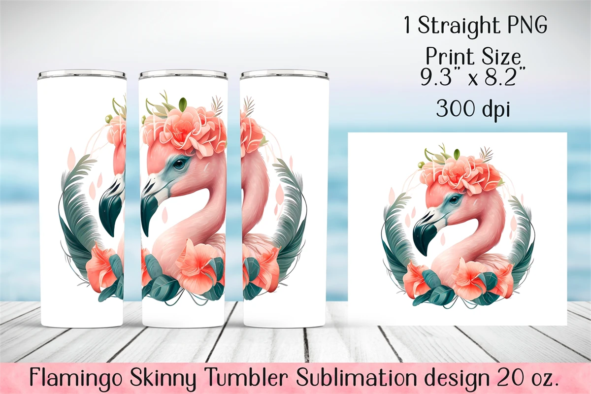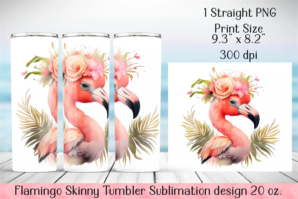 Pink Flamingo Skinny tumbler design. Sublimation. 20 oz.