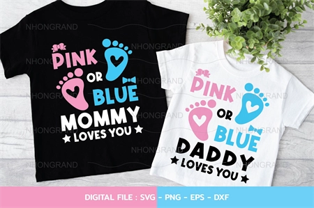 pink or blue mommy and daddy love you with newborn baby feet, for gender reveal shirt, Cricut Files, svg, png, eps, dxf, Instant Download