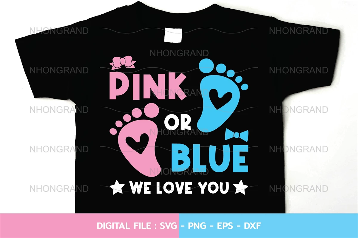 pink or blue we love you with newborn baby feet, bow tie shirt for gender reveal shirt, Cricut Files, svg, png, eps, dxf, Instant Download