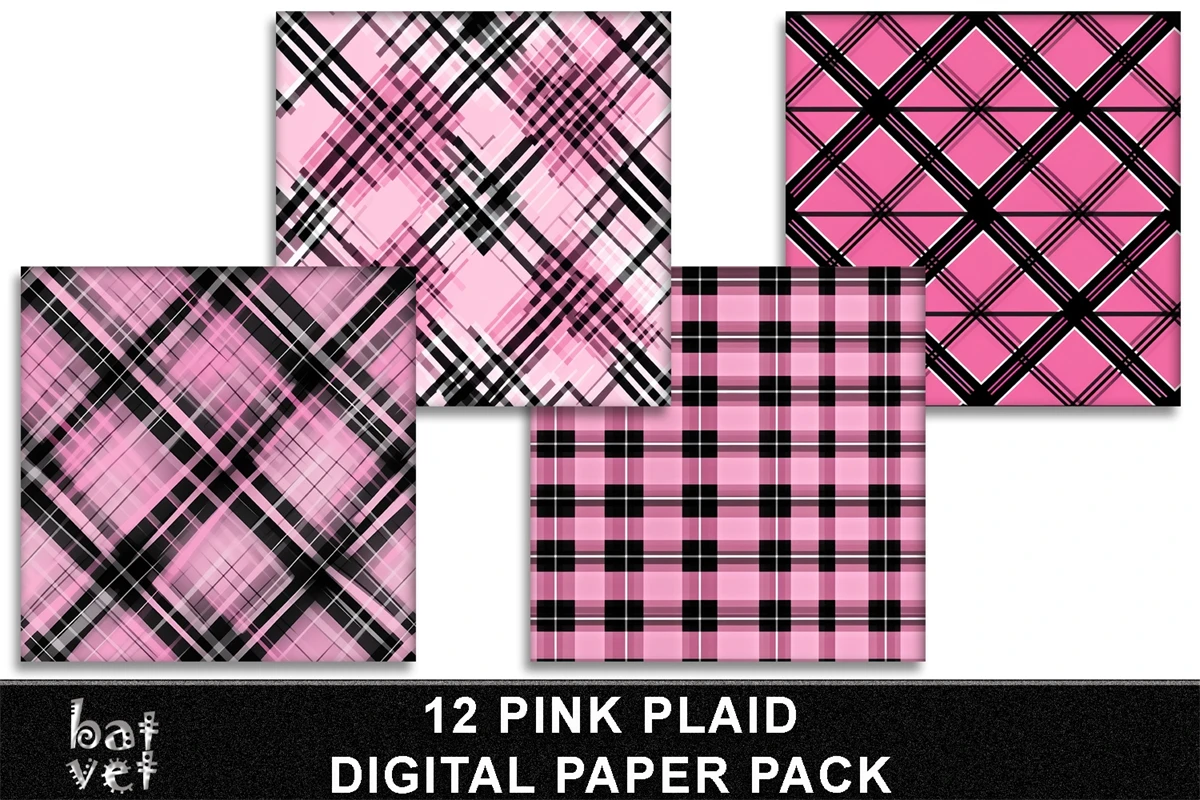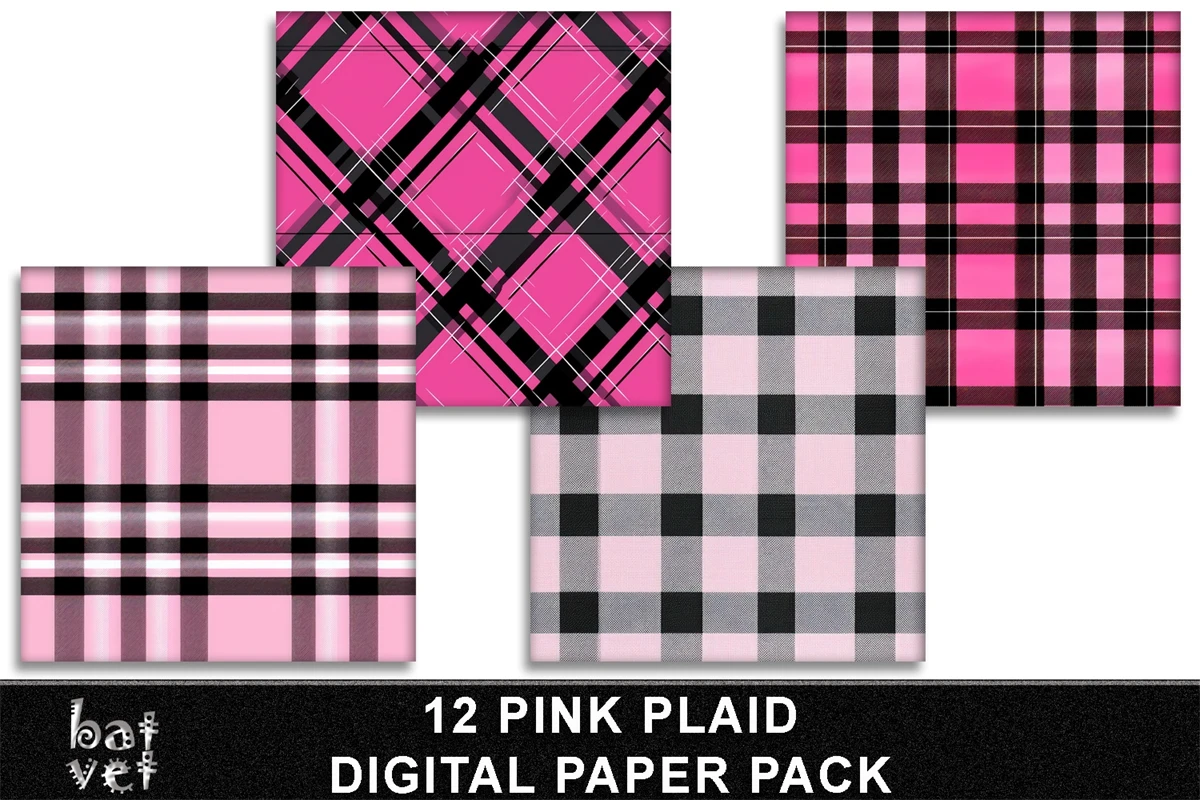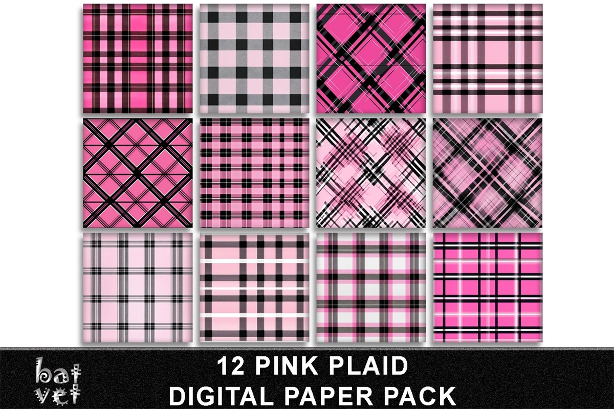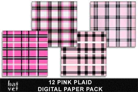 Pink Plaid Digital Paper Pack / Plaid Pink Background Bundle / 12 PNG Files