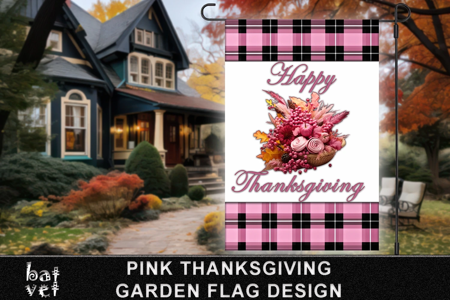 Pink Thanksgiving Garden Flag PNG / Pink Garden Decor Print