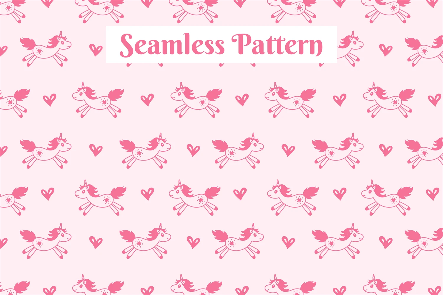 Cute childish pastel colored seamless pattern with little funny unicorn and print. Cartoon fairytale theme. Fantasy endless background for baby girl, fabric, textile, pajamas, wallpaper, nursery design. Repeat vector illustration in doodle style.